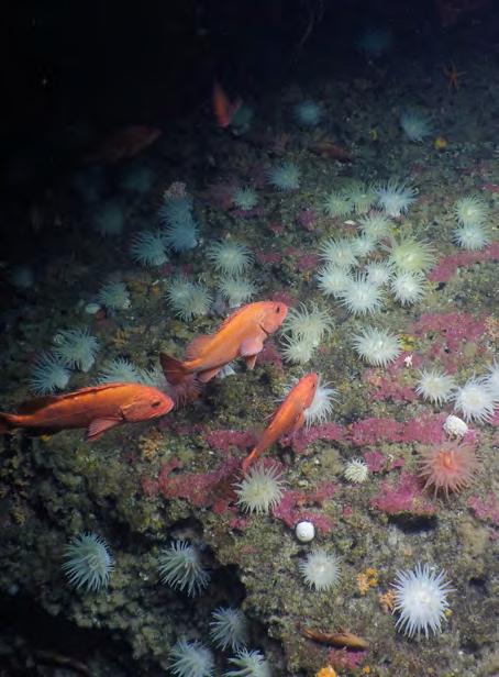 Rockfish and sea anemones on a seamount during the Northeast Pacific Seamount Expedition, July 2018.