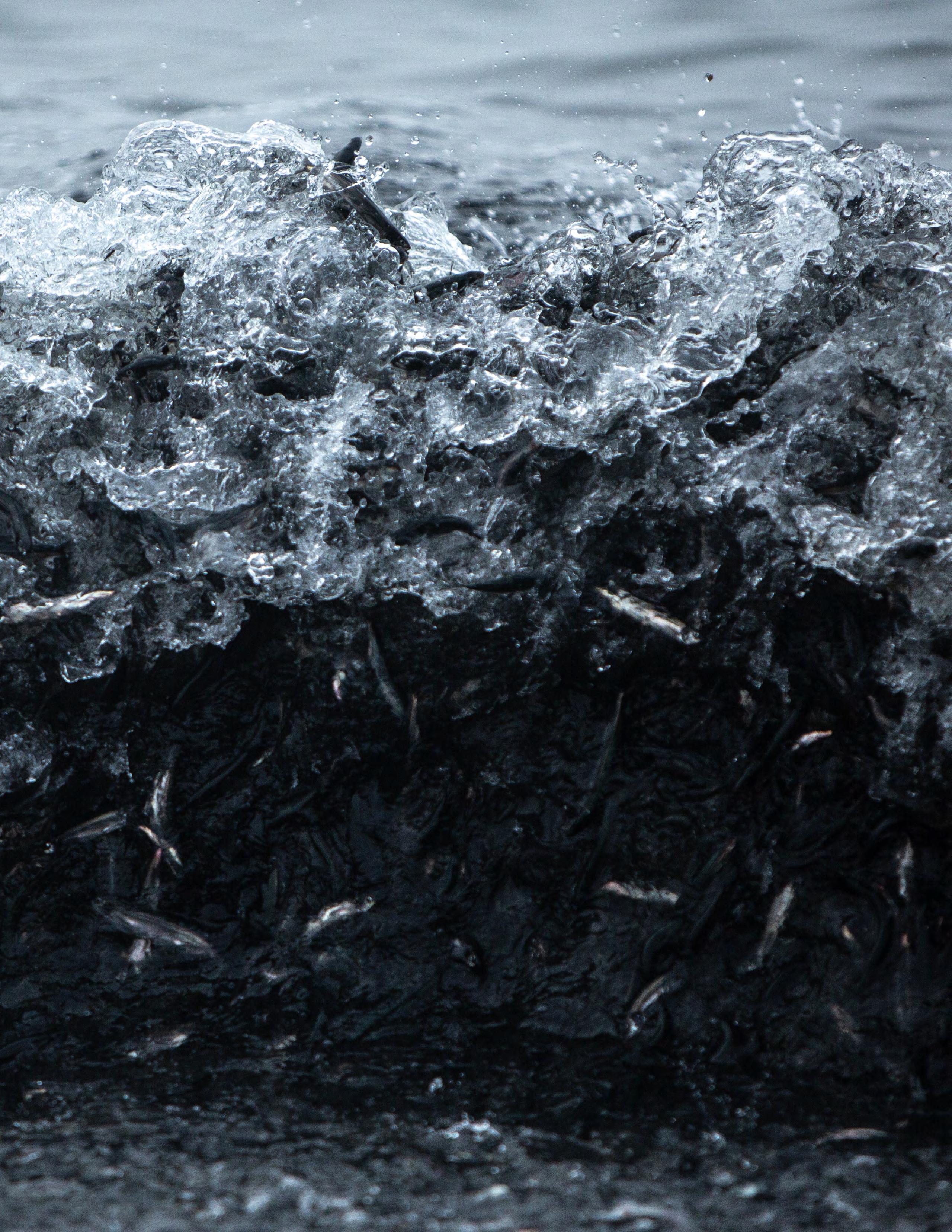 Each year, Pacific herring return from the open ocean to spawn along the coast of British Columbia. The annual event turns the waters turquoise with milt and coats rocks, eelgrass, and seaweed with eggs.