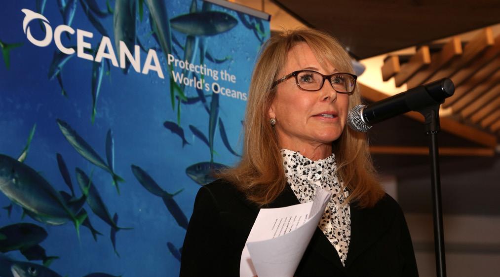Oceana CEO Andy Sharpless welcomed guests and reminisced on Oceana’s greatest victories of the past year, including enacting an indefinite moratorium on offshore oil exploration in Belize, banning drift gillnets in California and ensuring the protection of 98 percent of Chile’s coasts. Sharpless also introduced longstanding board members Valarie Van Cleave and Ted Danson as Oceana’s new Board Chair and Vice Chair, respectively. “Oceana’s job is to win policies that help make our oceans abundant. Ted and Valarie are proven winners, and it’s great to have them leading our Board of Directors,” Sharpless noted.