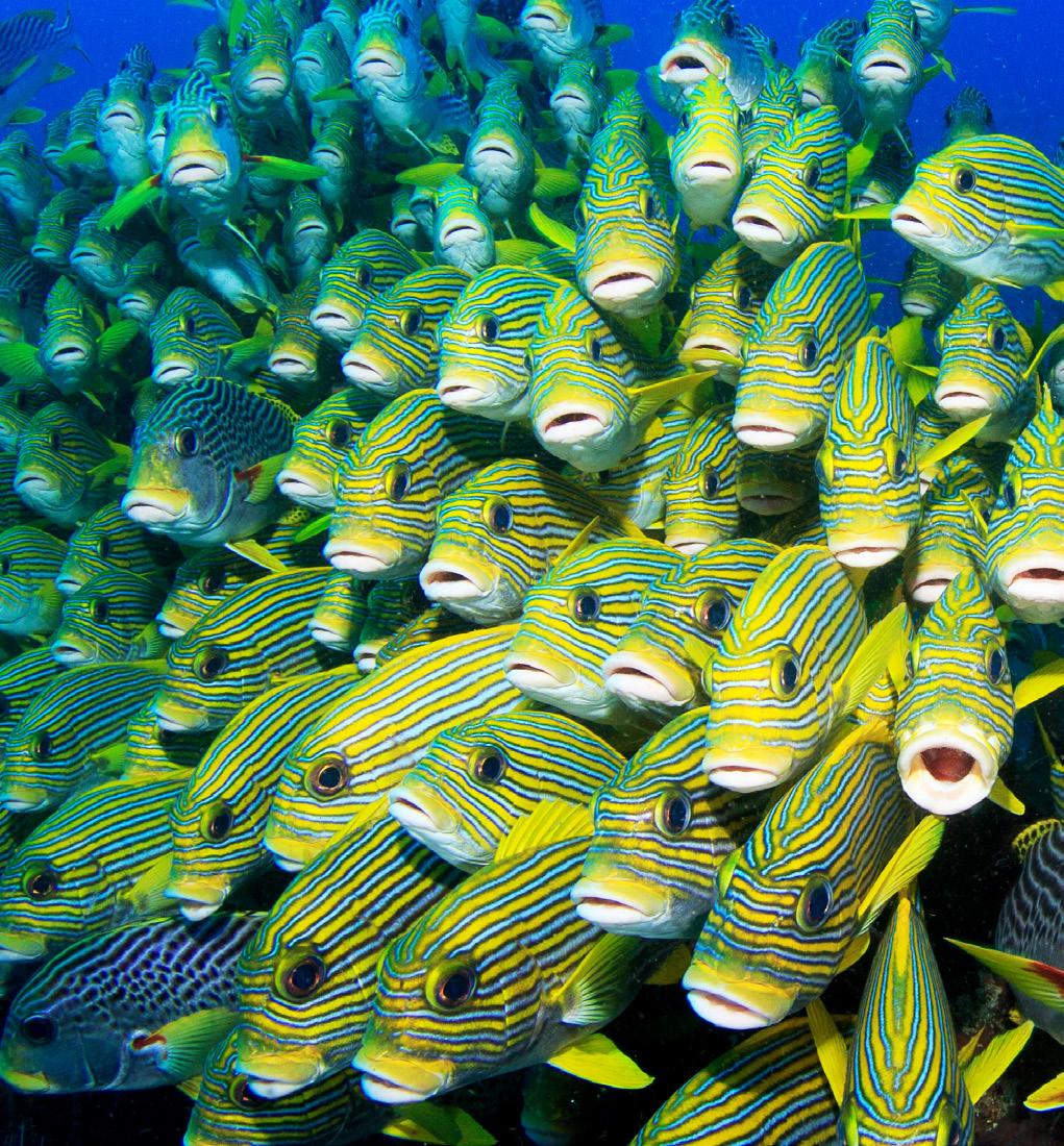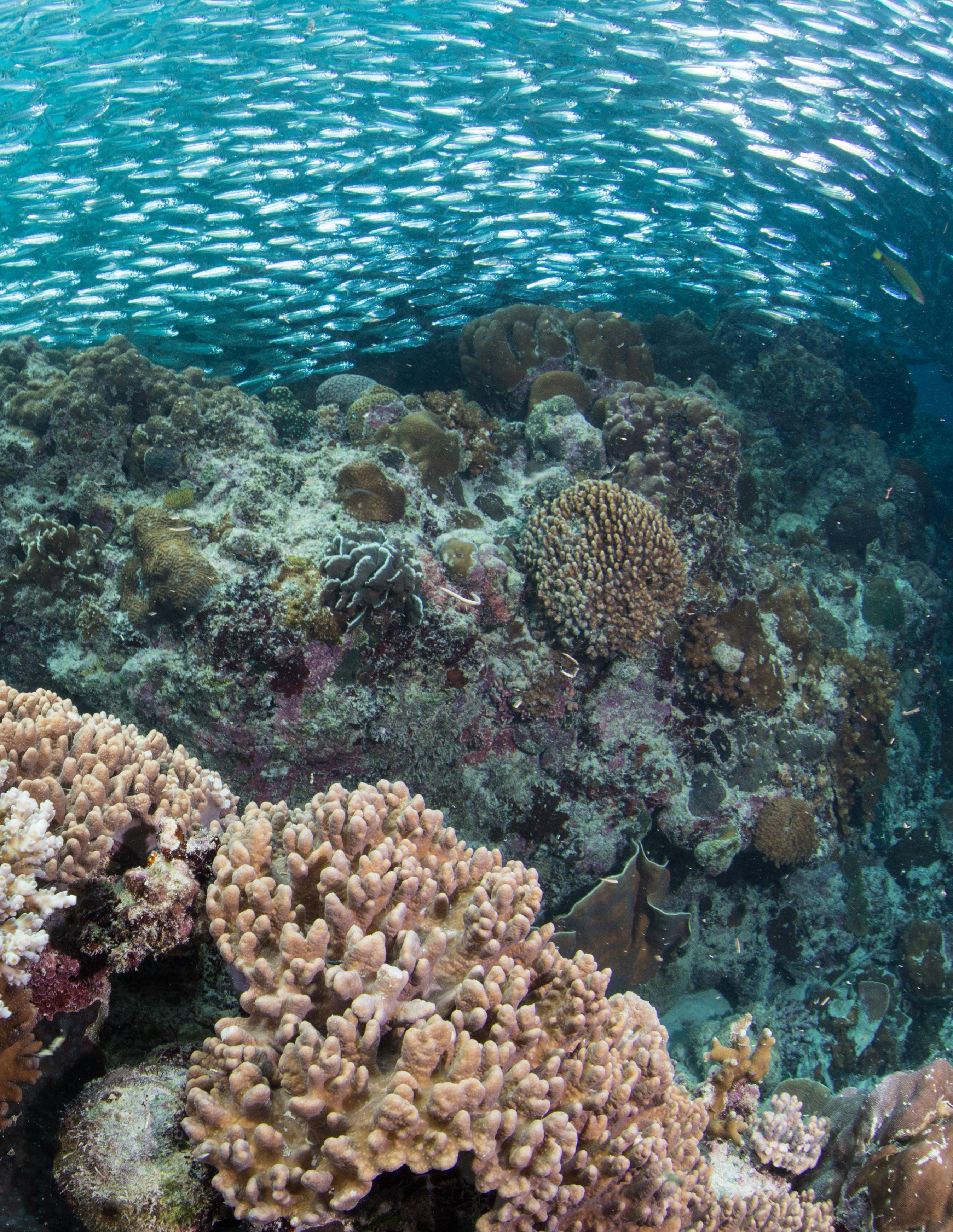 Off Moalboal, Cebu, in the central Philippines, coral reefs host a year-round “run” of hundreds of thousands of sardines. The swirling masses of sardines draw hungry fish and whales, as well as tourists and fishermen. Moalboal lies in the vast protected seascape of Tañon Strait. There, some local fishermen are reporting gains in seafood catches, largely due to the enforcement of a long-neglected ban on illegal commercial fishing, a major accomplishment of Oceana’s advocacy work in the region.