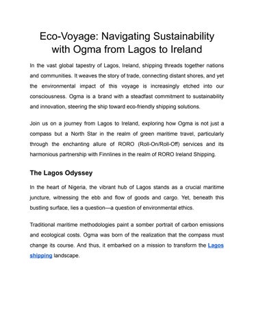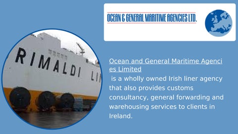 Ocean and General Maritime Agencies Limited is a wholly owned Irish liner agency that also provides customs consultancy, general forwarding and warehousing services to clients in Ireland.