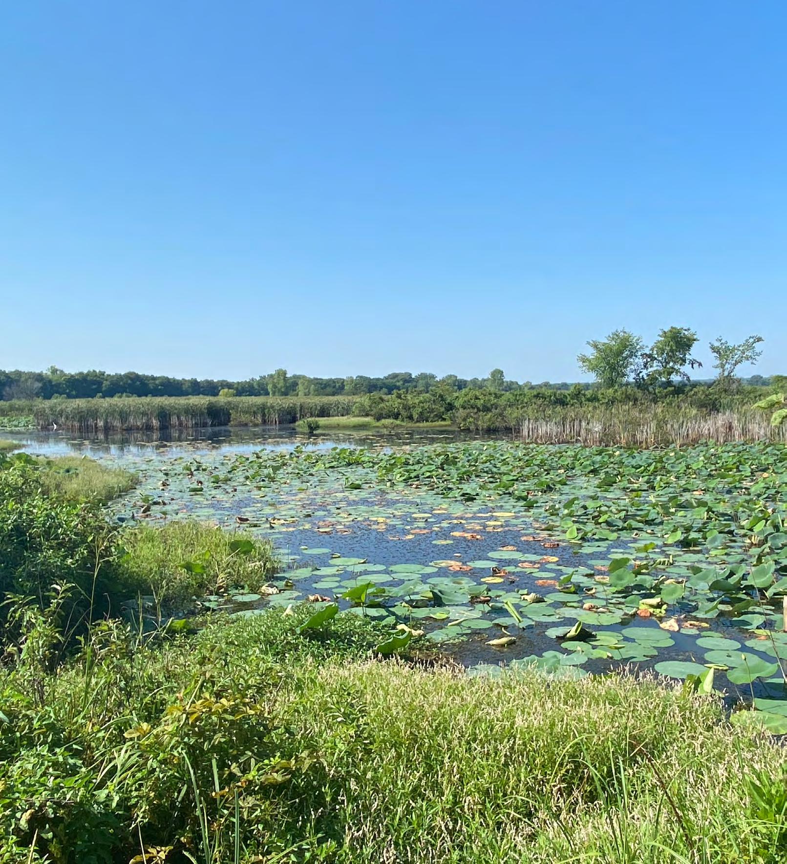 As I explored the wetlands looking for a sight I stumbled upon Grebe Pond. There were four things that inspired me in Grebe Pond: a bird nest among the tall grasses, the tall grasses, a black garden snake, lily pads, and Illinois bundle-flowers (which were everywhere).