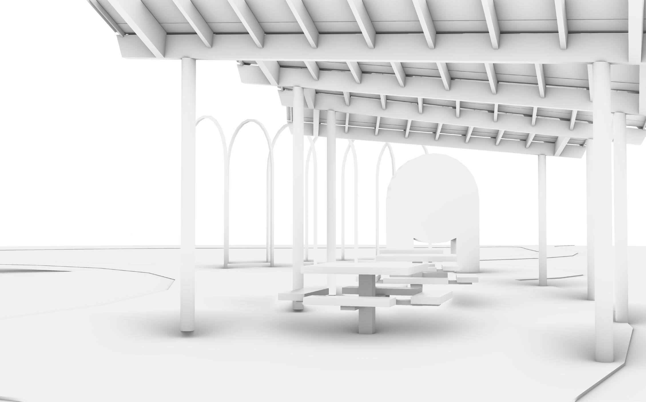 I took the lead in designing the main structure of the shade pavilion which meant I also had to have my hands in the roof design as well. We went through a few iterations of tile systems until we found a feasible size.