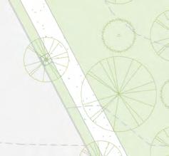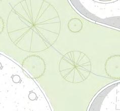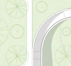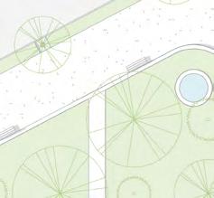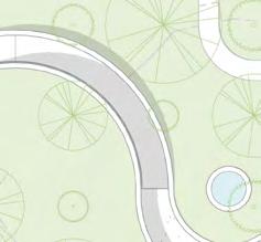 The circular garden at the south end of the site provides a landscaping opportunity similar to that of the Chi Omega fountain.