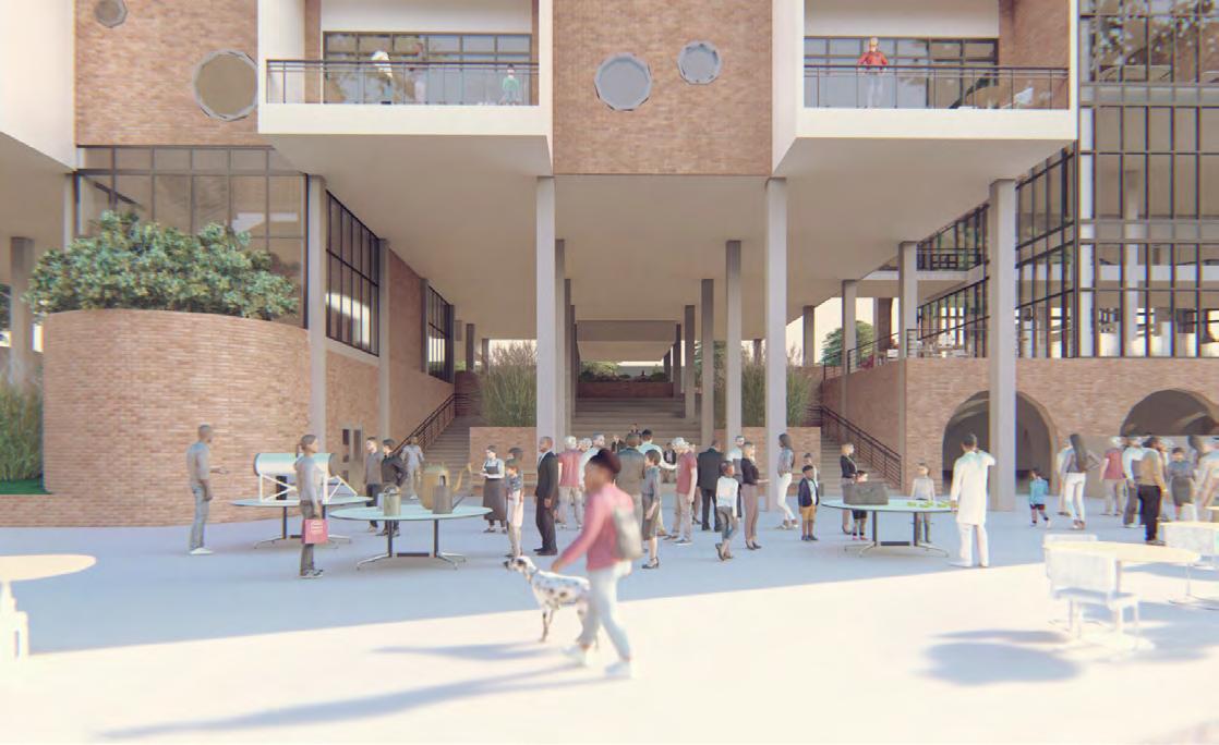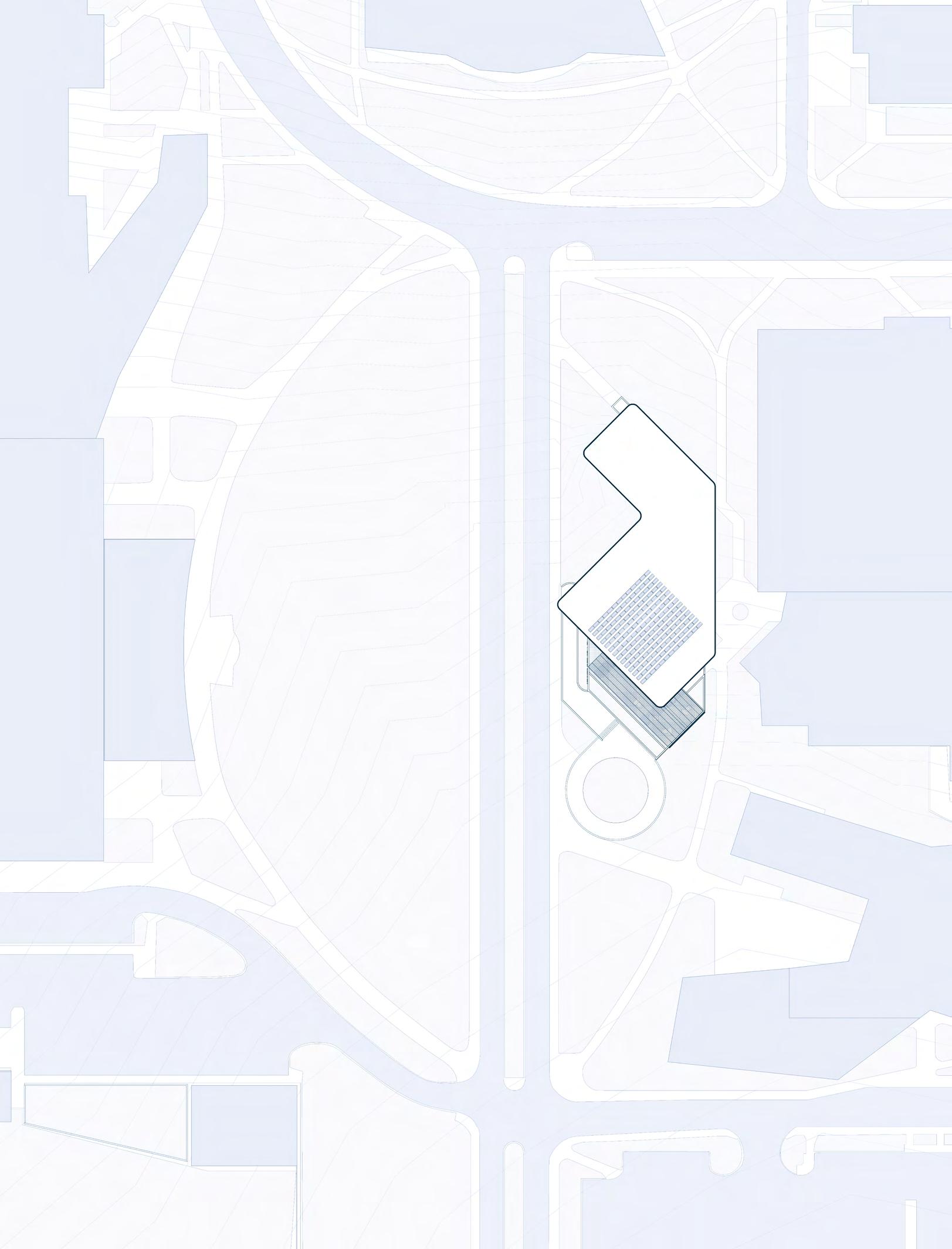 For the current iteration I took the mass and split it into pieces and pulled them apart to break up the looming form and allow for an internal covered plaza.