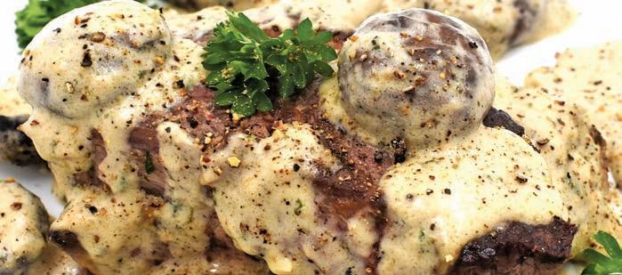 6. Place steaks on plates and top with mushroom sauce.