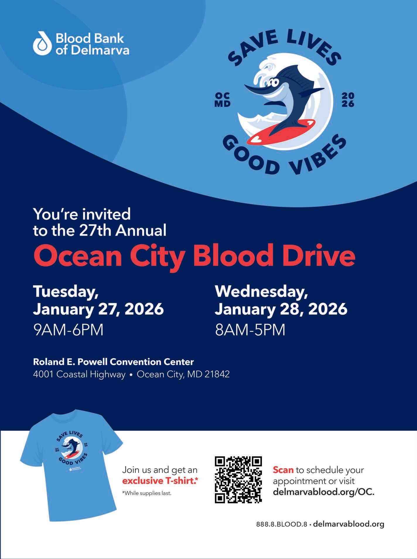 The honorees will be recognized from 6-10 p.m. Tickets are $125 per person, which includes two drinks, a threecourse plated dinner, and professional photos. To register, visit www.oceancity.org or contact Joanna Aydelotte, events manager, at joanna@oceancity.org or 443-664-3052.