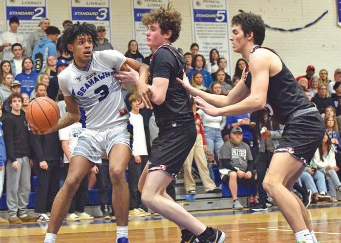 Junior guard/forward Trybe Wise led the Seahawks’ attack scoring, two baskets in each quarter. He was four for six from the foul line for a total of 20. Wise, who was voted ‘player of the game, had his best night ever with the Seahawks, along with hitting a double-double for 20 points, he also pulled down 10 rebounds.