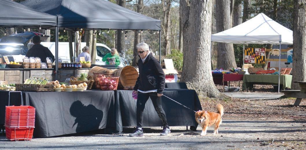 With spring’s arrival this week, the vendors and attendance to the weekly Ocean Pines Farmers and Artisans Market at White Horse Park will continue to grow. An attendee is pictured last Saturday with a four-legged friend.