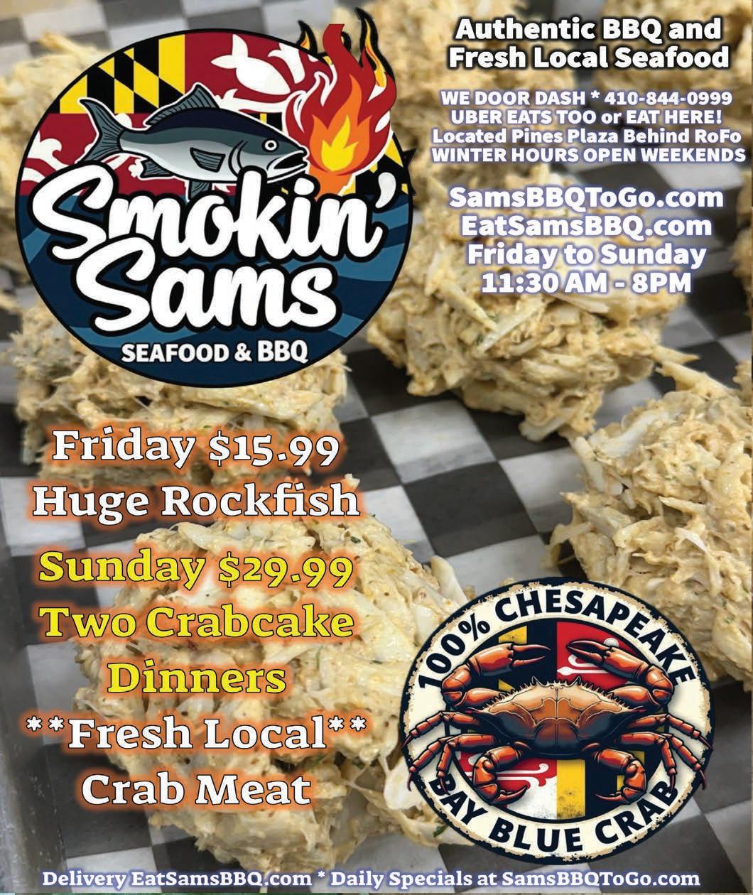 Smoked Brisket or 1/2 Rack of Ribs w/ a 5 oz. Classic Crabcake and Two Sides $25