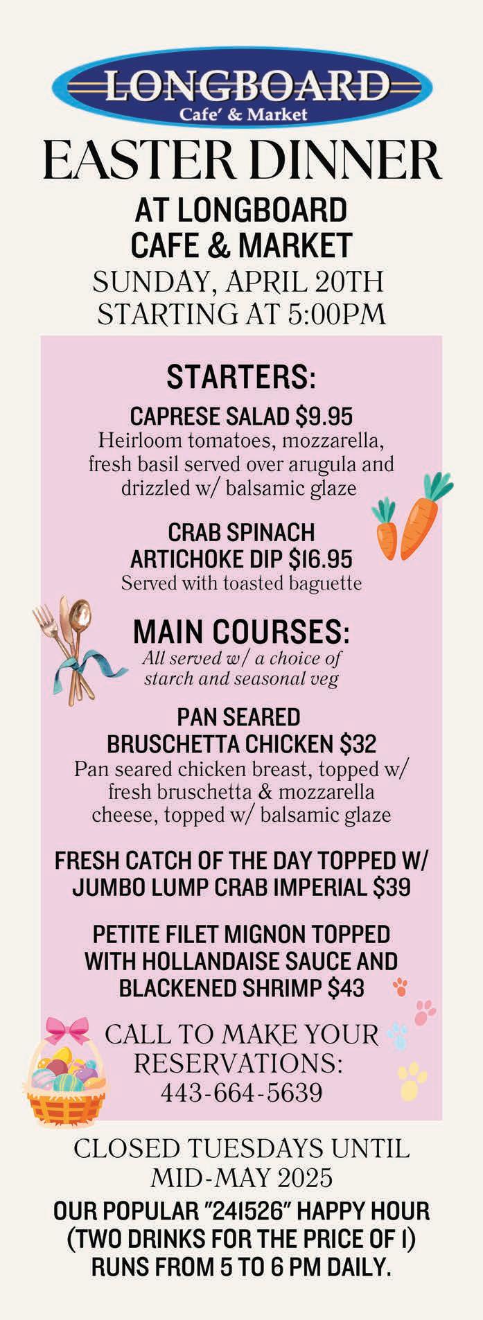 Ray’s Celebration of Life will be held on Saturday May 3, 2025 from 2-5 p.m. at Waterman’s Seafood Company 12505 Ocean Gateway, Ocean City, Md. 21842. Burial will be at Eastern Shore Veterans Cemetery in Hurlock.