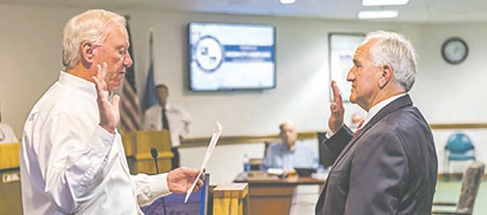 Fire Chief Richie Bowers is pictured being sworn into his role by Mayor Rick Meehan.
