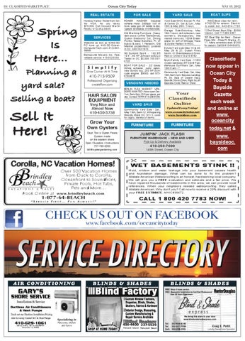 Classifieds now appear in Ocean City Today & Bayside Gazette each week and online at www. oceancity today.net & www. baysideoc. com