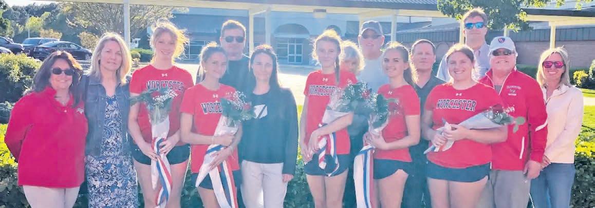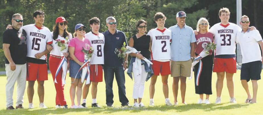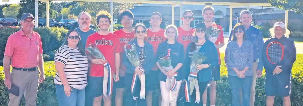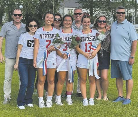 Worcester Preparatory School recognized its senior studentathletes at their last home games of the spring season this month. Above left, boys varsity lacrosse seniors Lucas Nicastro, Nathan Montague, Ryan Mann and Owen West are pictured with their parents. Above right, senior members of the girls varsity lacrosse team Danielle Carr, Nazli Unal and Emma Zajdel are pictured with their parents. Middle left, boys varsity tennis seniors pictured with family members were Briar Parsons, Allen Zhang, Aleksey Klimins, Jackson Fernley and James Haley. Bottom
