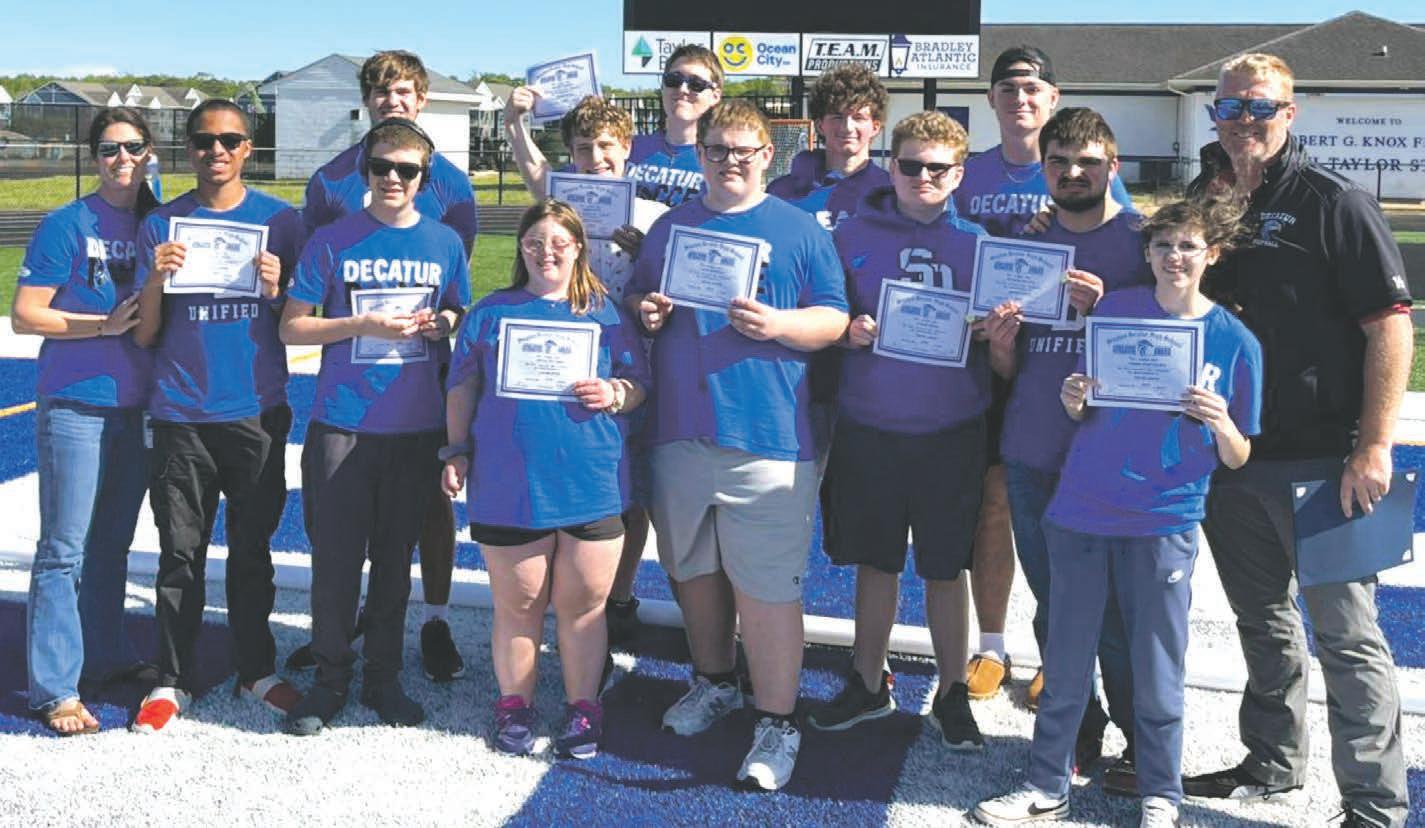 Stephen Decatur’s Unified Bocce team concluded a highly successful spring season earlier this month with a win over Crisfield at home. After the match, the team celebrated the season with awards presented by Coach Jake Coleman, the school’s football coach as well. Individual end-of-season recognitions went to Jacob Marshall, Sportsmanship Award; Blaine Coleman, Leadership Award; Michael Jones, Most Improved Player; and Carson Green, MVP. The last match of the season also served as a recognition for departing team members Ray Molnar and Nate Tapley.