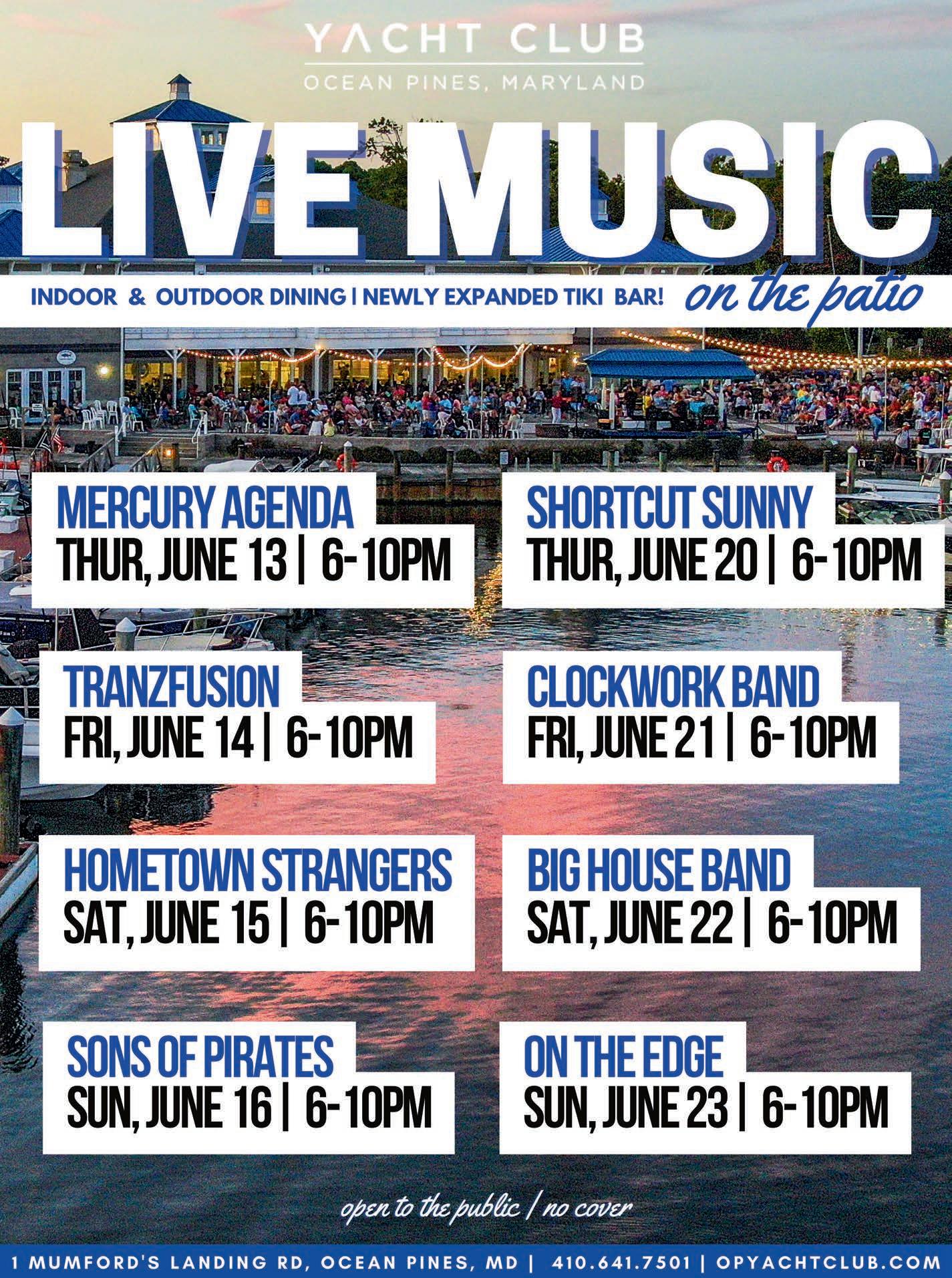 Bus trip to Camden Yards on June 16. Pick up at Ocean Pines Community Center at 8:30 a.m. Game time at 1:35 p.m. Tickets cost $120 per person and includes transportation, a seat in the picnic perch, (section 284) and all-you-can-eat Picnic Perch food. Tickets: 410-641-7052.