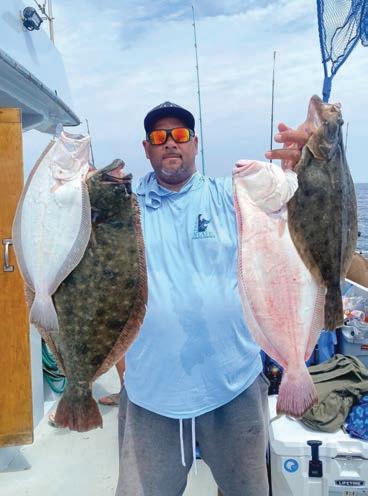 Above left, this young man caught a nice rockfish on board Lucky Break Charters with Captain Jason Mumford. Above middle, this crew had an awesome day aboard the Pumpin’ Hard with Captain Mike Burt putting some nice yellowfin and a bigeye tuna in the box. Above right, Dennis caught his limit of flounder up to 6 pounds on board the Angler with Captain Chris Mizurak.