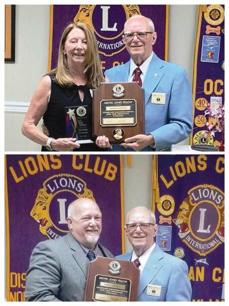 OC Lions Sarah Hooper and Greg Cathell recently received the Melvin Jones Award from outgoing President Norm Cathell. Named for the founder of the Lions Club International, the award is the highest honor from the Lions Club.