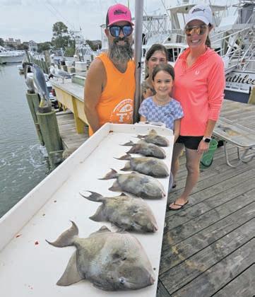 Above left, this crew had a great time on Spring Mix II with Captain Chris Watkowski when they boxed a limit of mahi and released a white marlin. Above middle, Captain Marc Spagnola of Dusk to Dawn Bowfishing has been on the meat lately putting his shooters on some nice southern and cow nosed rays. Above right, this crew caught some nice triggerfish fishing with Captain Tony Battista of Saltwater Adventures.