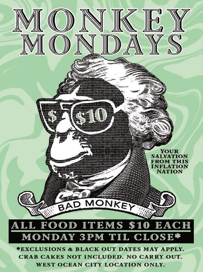 WEDNESDAY: CHEF’S CHOICE TWO CHESAPEAKE BAY CRABCAKE DINNERS w/ Hand-Cut Fries, Slaw 5 oz. $35