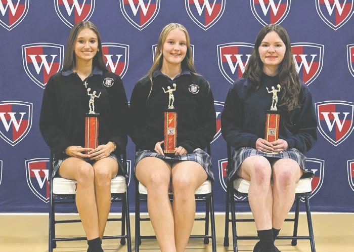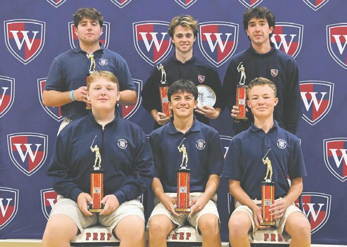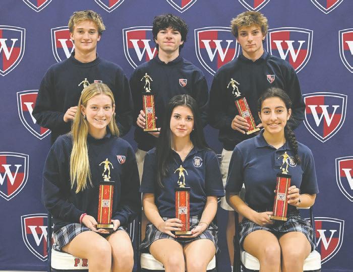 Worcester Preparatory School recently announced its fall sports award recipients for soccer, golf, volleyball and cross country. Above left, standing from left, are varsity boy soccer award winners Max Carpenter, coach’s award; Caleb Walston, MVP; and Gavin Sutherland, most improved. Seated, from left, are Harper Hertrich, coach’s award; Gracie Holloway, most improved; and Elena Gjoni, MVP.