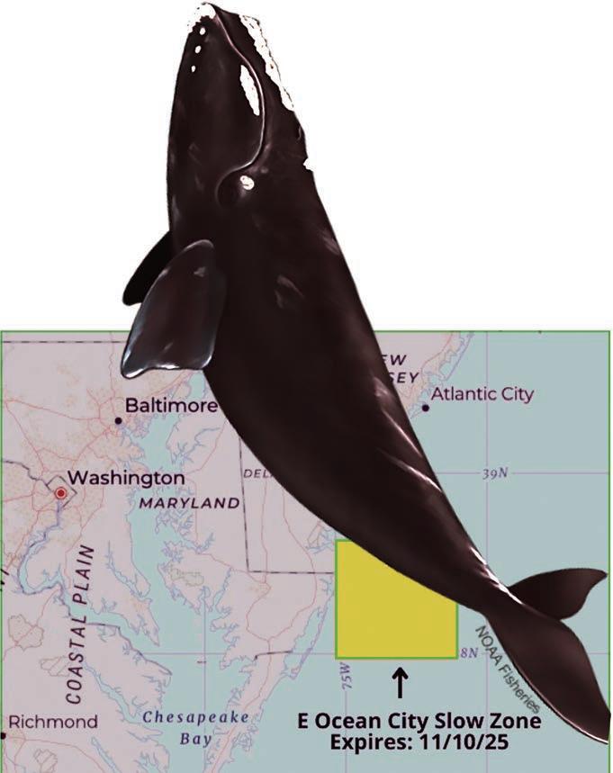 (Nov. 7, 2025) An offshore slow zone for boaters will remain in effect through Nov. 10 after endangered North Atlantic right whales were spotted east of Ocean City last week.