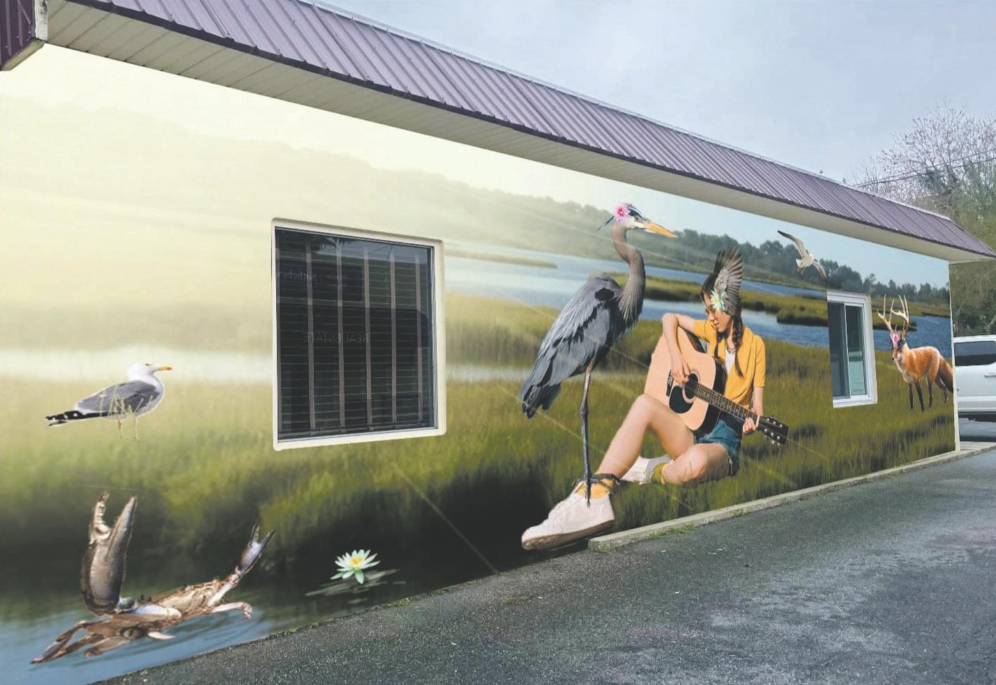 At that Oct. 1 meeting, Wells said the mural, which will feature an Eastern Shore marsh populated by a crab, a blue heron, a young woman in a headdress playing the guitar, and a fox/deer-like creature with antlers, strengthens the town’s commitment to artistry and local talent.