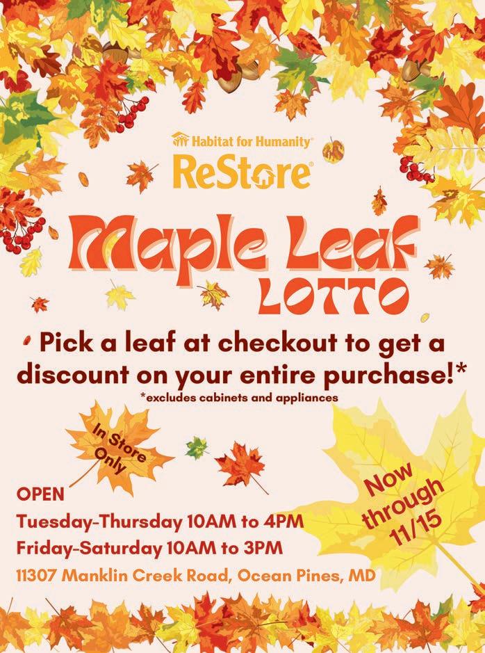 Snow Hill library, 307 N. Washington St. Open to middle and high school students. All entries that meet requirements will earn one hour of service larning. Winners in each age group will receive an extra prize. Reach out to history@worcesterlibrary.org for any local history research assistance. Stop in or call for full details. 410-632-3495 Due by Nov. 15.