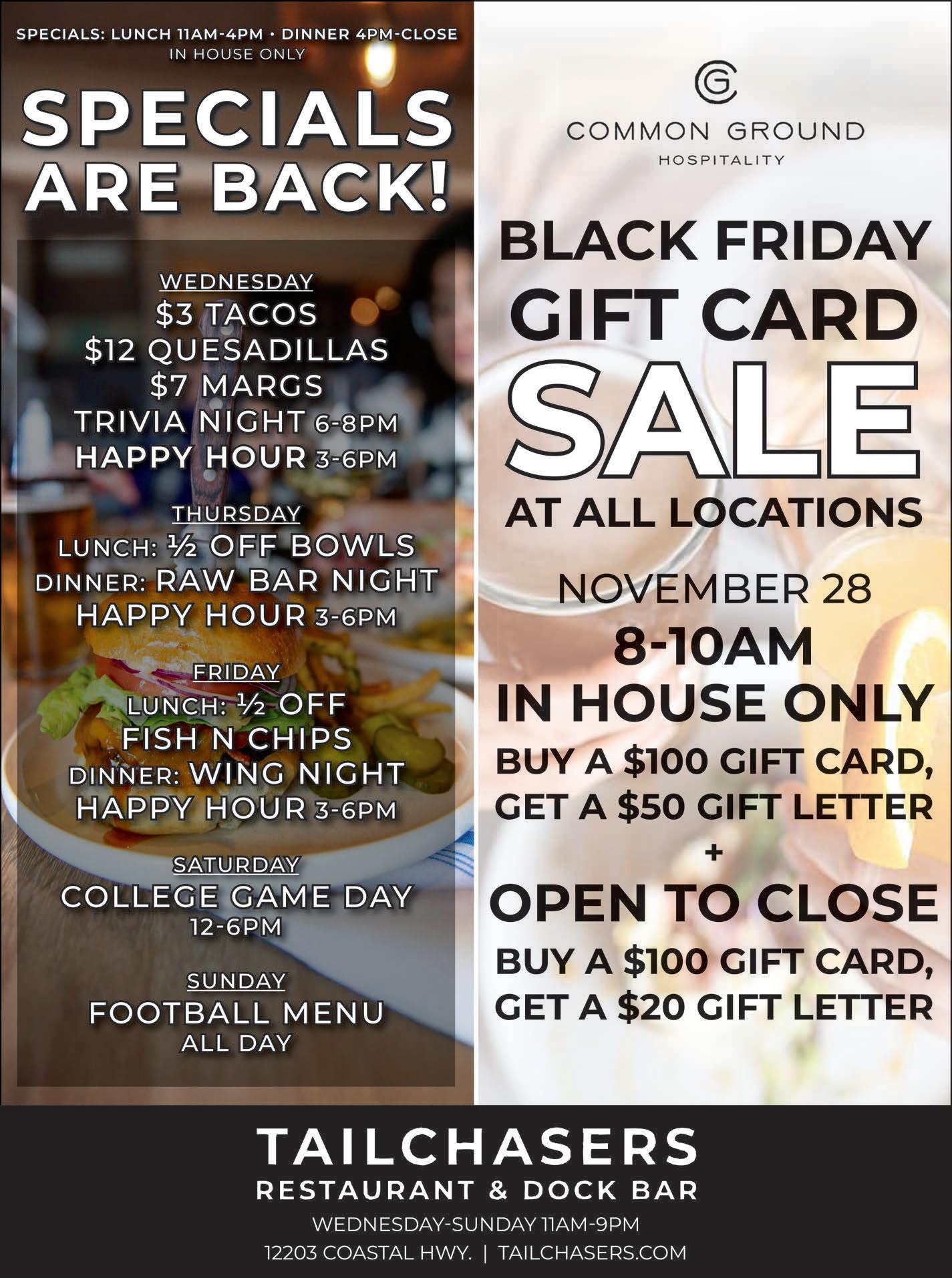 Pre Black Friday EMAIL gift card special starts Thursday 11/27 at ccfbayside.com. Get a jump on shopping!