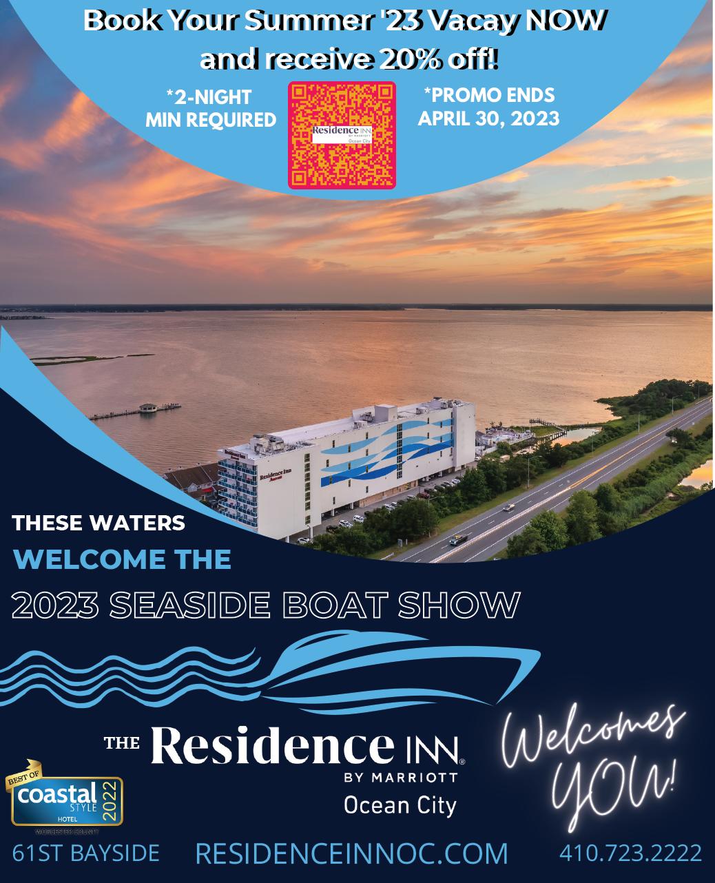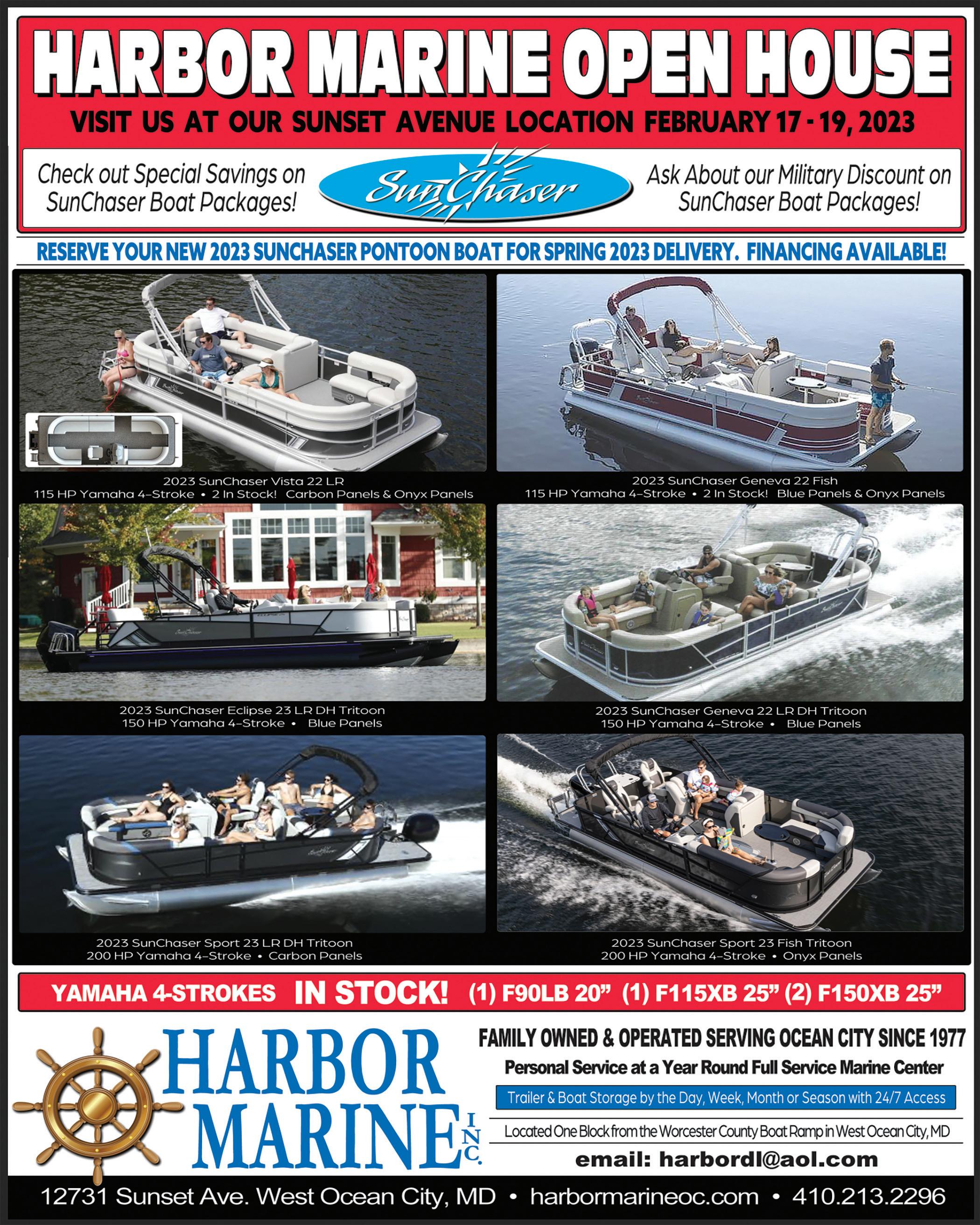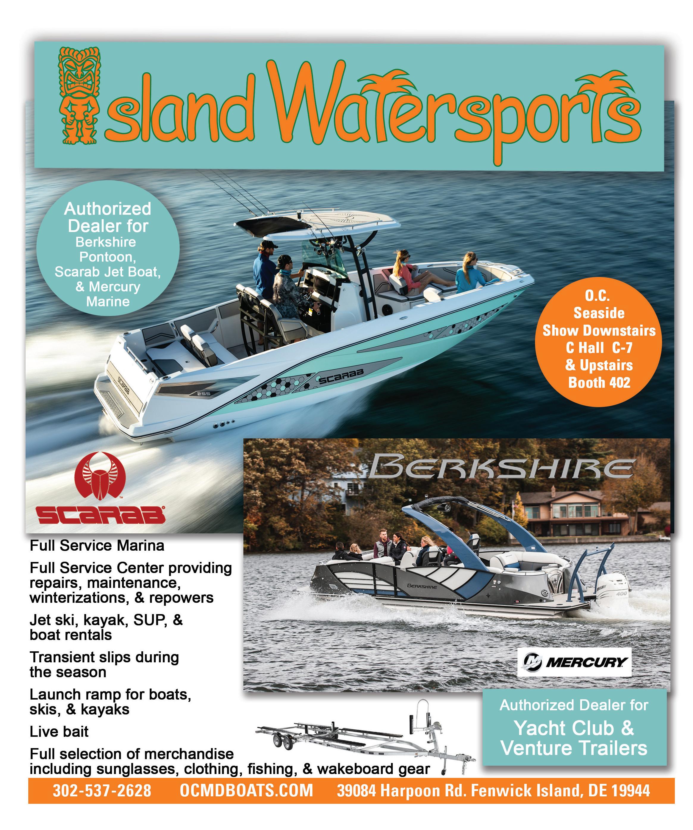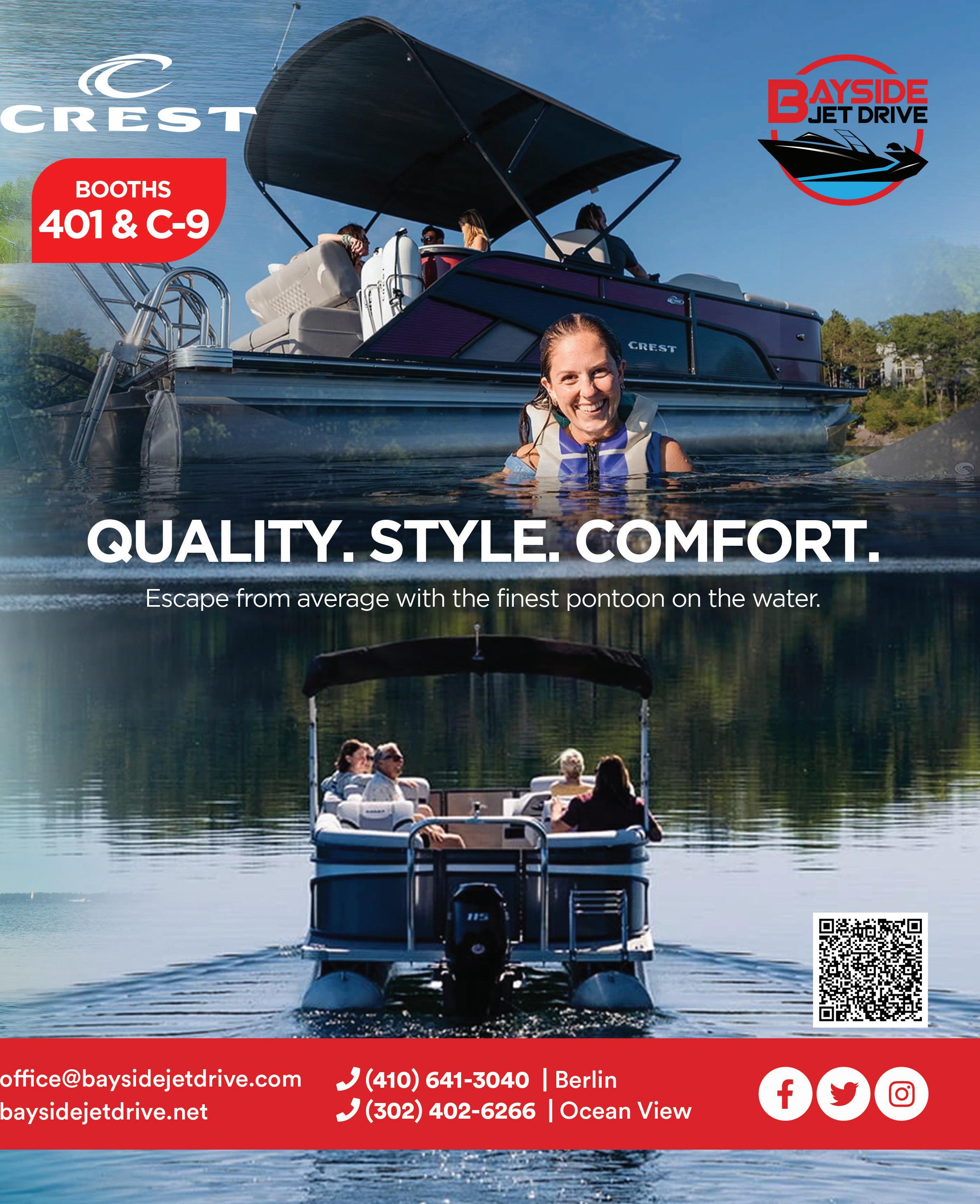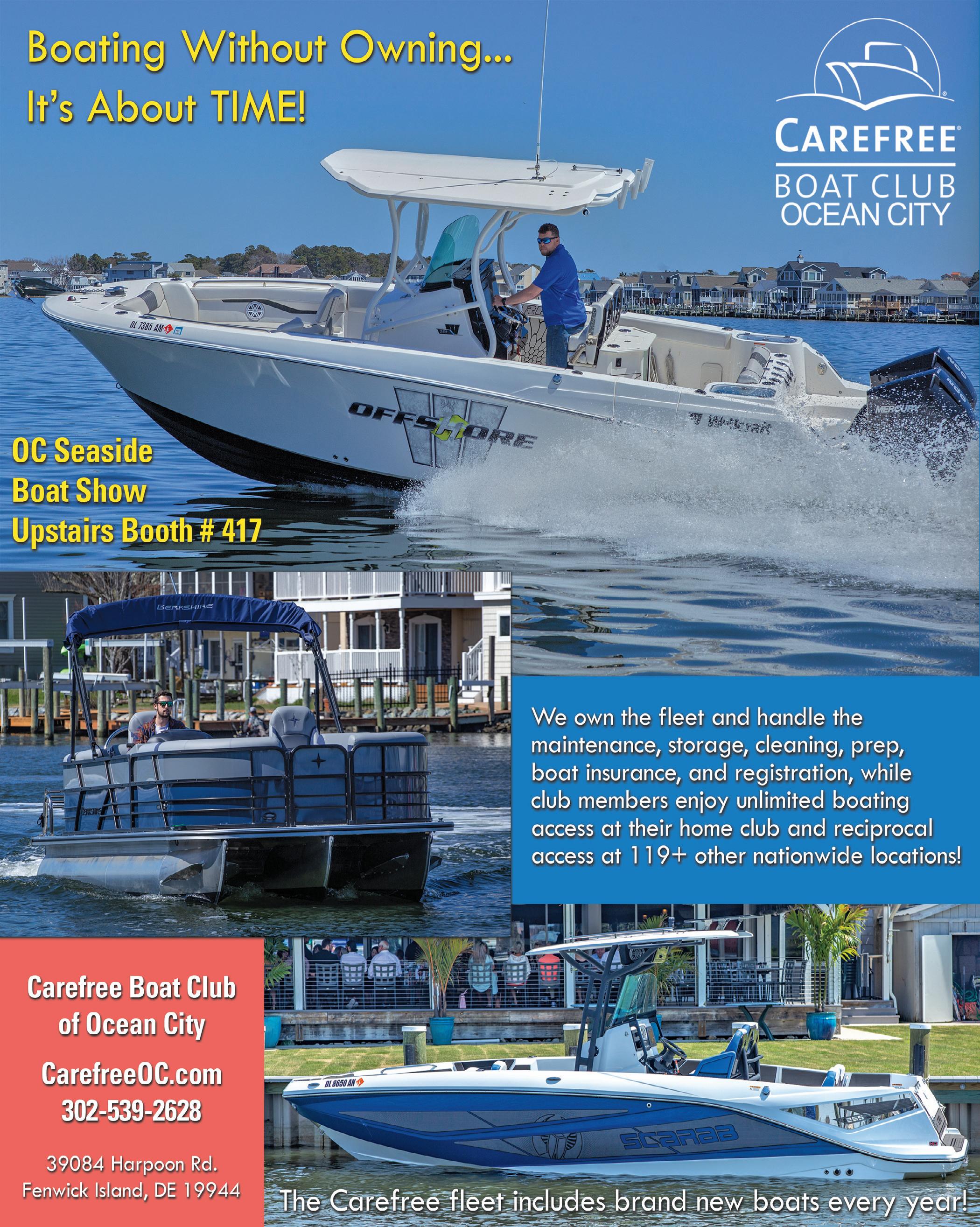 WELCOME TO THE 40TH ANNUAL SEASIDE BOAT SHOW, sponsored by the Ocean City/Berlin Optimist Club. This annual Presidents’ Day show will once again be at the Ocean City Convention Center and features approximately 350 boats with over 50 boat dealers among the approximately 150 exhibitors from Maryland, Delaware, New Jersey, Pennsylvania, and Virginia offering numerous special show prices, displaying their newest and most popular models inside the 40th Street Ocean City Convention Center. The large number of boats sold each year during this 3-day show has established it as one of the most popular boat shows on the East Coast. The Seaside Boat Show will, again, offer many boat related exhibits, including marine electronics, trailers, canvas tops, motors, fish and tackle, nature crafts, boat parts, jewelry, art, financing, and insurance.