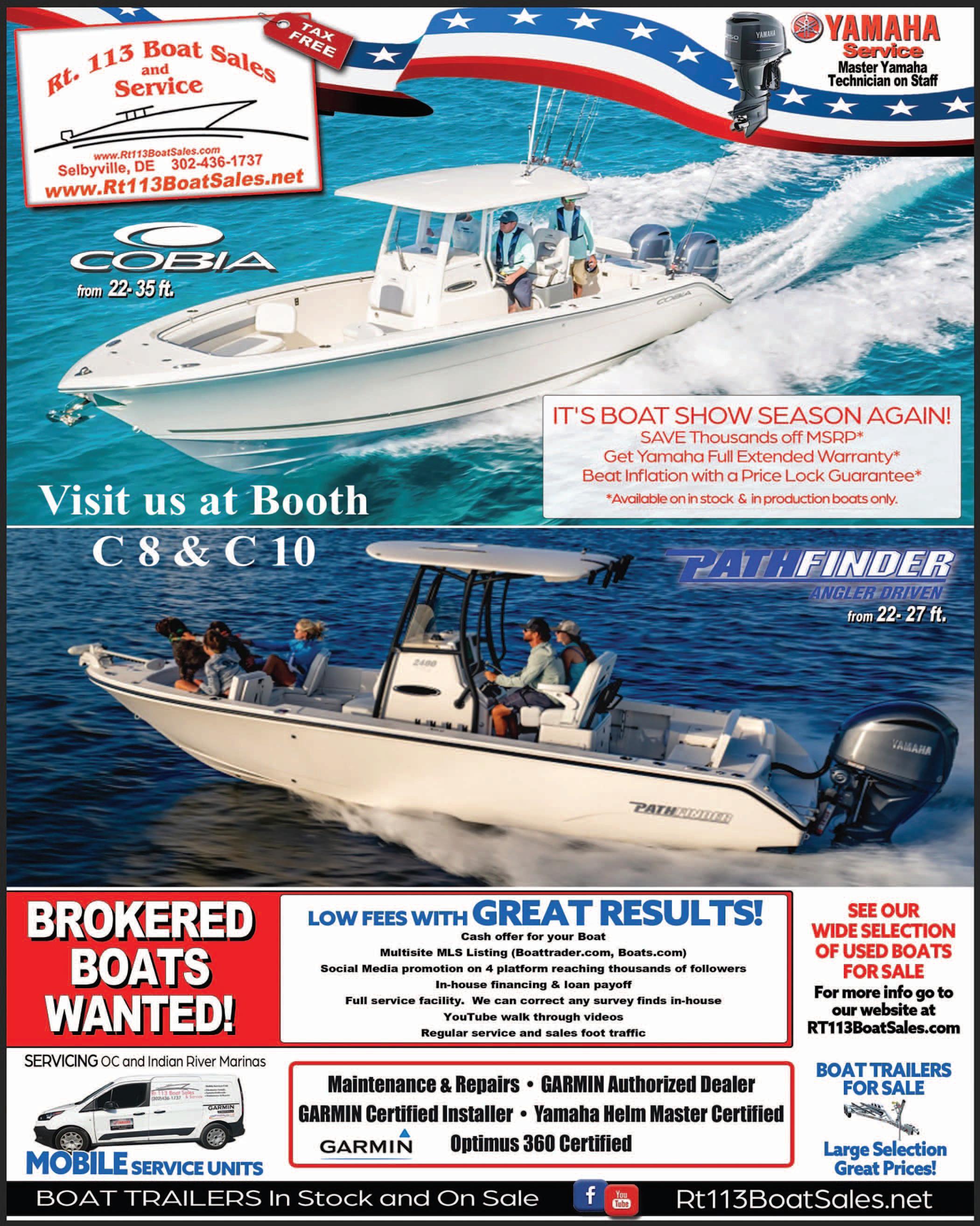 NOW SELLING Jones Brothers Marine & Alweld Boats Powered by Yamaha With the same Top-Notch Service we’ve provided over the last 10 years 11200 Five L Drive Berlin, MD 21811 443-366-4382 www.ptsmarine.com PROP SHOP FENWICK ISLAND, DE 302-436-8667 FIBERGLASS REPAIRS Specializing in All Major and Minor Structural & Cosmetic Repairs • Over 30 Years Experience • Fenwick Island, Delaware #Booth 206 302-448-0514 • 302-436-4211 joenorthbay@comcast.net 16