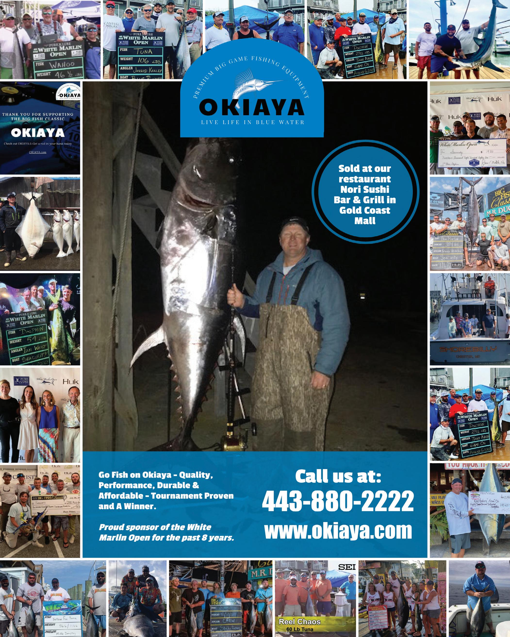 8 BOOTH C-32, 506 SOLD AT OUR RESTAURANTS IN OCEAN CITY, MD Open 7 Days A Week Nori Sushi Bar & Grille 443-880-6258 Sophia’s Italian Restaurant and Pizzaria 410-723-5188 Yuzu Sushi 300 Coastal Hwy, Fenwick Island, DE Both Located in the Gold Coast Mall, Ocean City Voted Best Offshore Rod Under $100.00