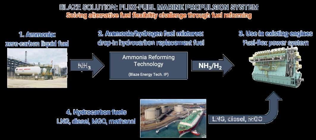 Blaze Energy focuses on enabling zero-carbon combustion through advanced ammonia-based fuel solutions. They develop proprietary technology to convert liquid ammonia into ammonia/hydrogen blends on-site and on-demand, offering a carbon-free alternative to traditional hydrocarbon fuels like diesel or natural gas. This innovation is targeted at decarbonizing hard-to-abate industries such as heavy manufacturing and commercial transportation, where electrification is not practical.