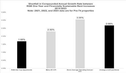 In nine out of the past ten years, the New York City Rent Guidelines Board has adopted rent adjustments that were below inflation. In total, the rent adjustments have been 14%, while inflation has gone up 23%. The RGB’s decisions have led to the devaluation of thousands of buildings, increased foreclosures, and bank failures. Currently, hundreds of thousands of rent-stabilized apartments cost more to operate
