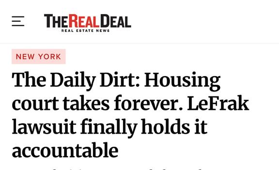 In February 2024, the LeFrak group filed a lawsuit against Queens Housing Court, highlighting the court’s “nightmarish” delays and inability to hit court mandated deadlines. Court officials admit the backlog has led to months-long delays.