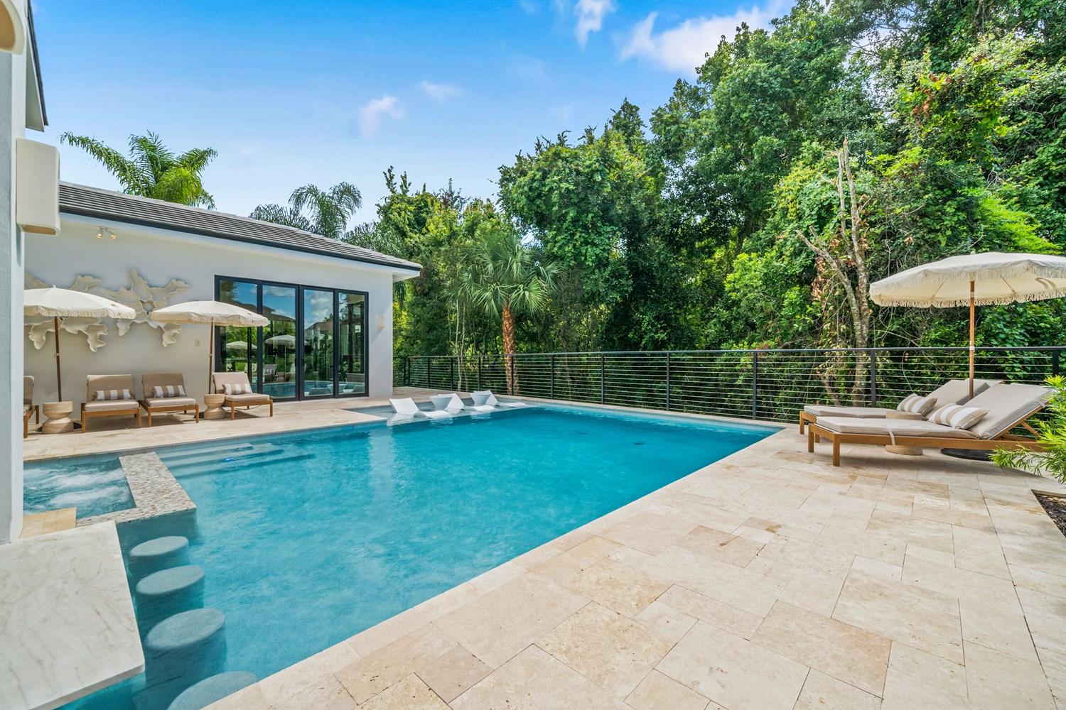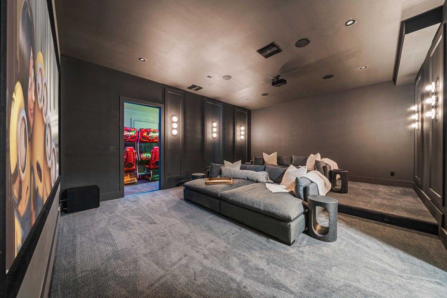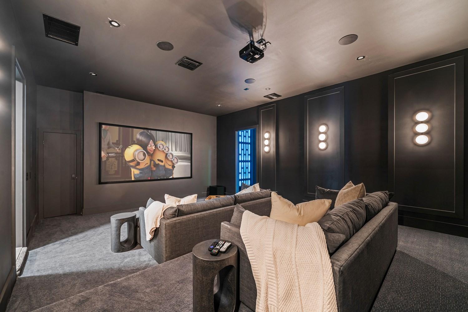 Younger guests willlove the “How to Train Your Dragon”themed bedroom, complete with a secret hideout and its own gaming nook, while the grown-ups can settle into the expansive movie theatre, spend evenings in the games room, or squeeze in a workout in the gym/yoga suite, which overlooks the private rear outdoor space framed by tropicalwoodland. Outside, the resort-style pool area includes a sparkling poolwith spa, sun-shelf, and a fully equipped swim-up bar, perfect for sun-soaked afternoons and end-ofday wind-downs.