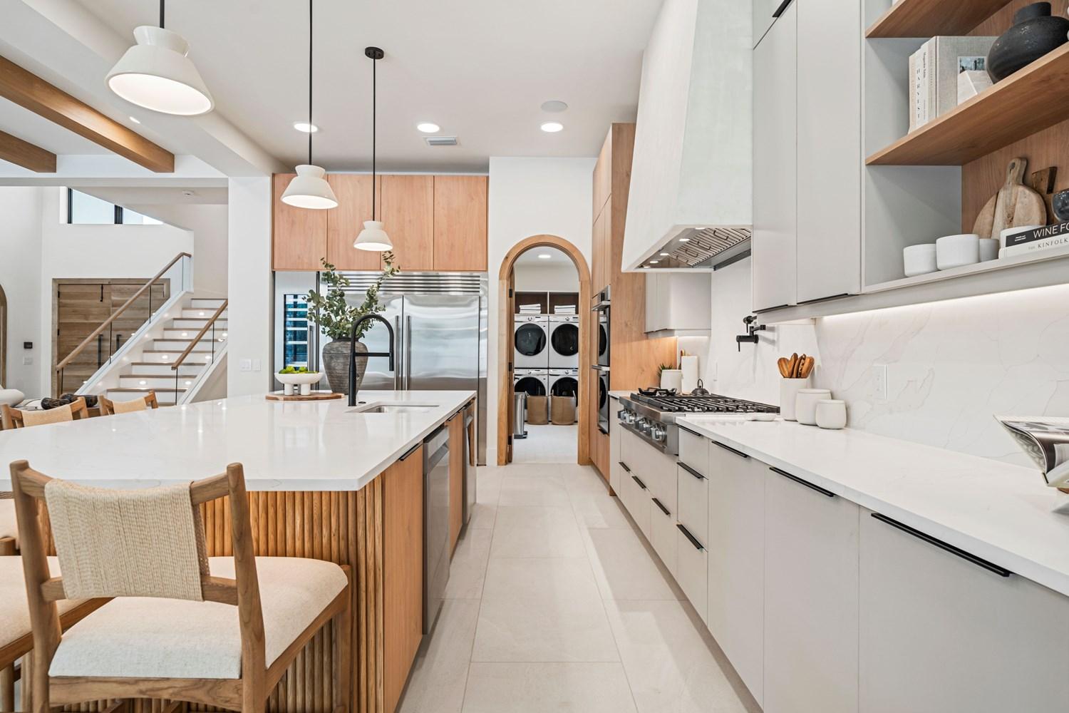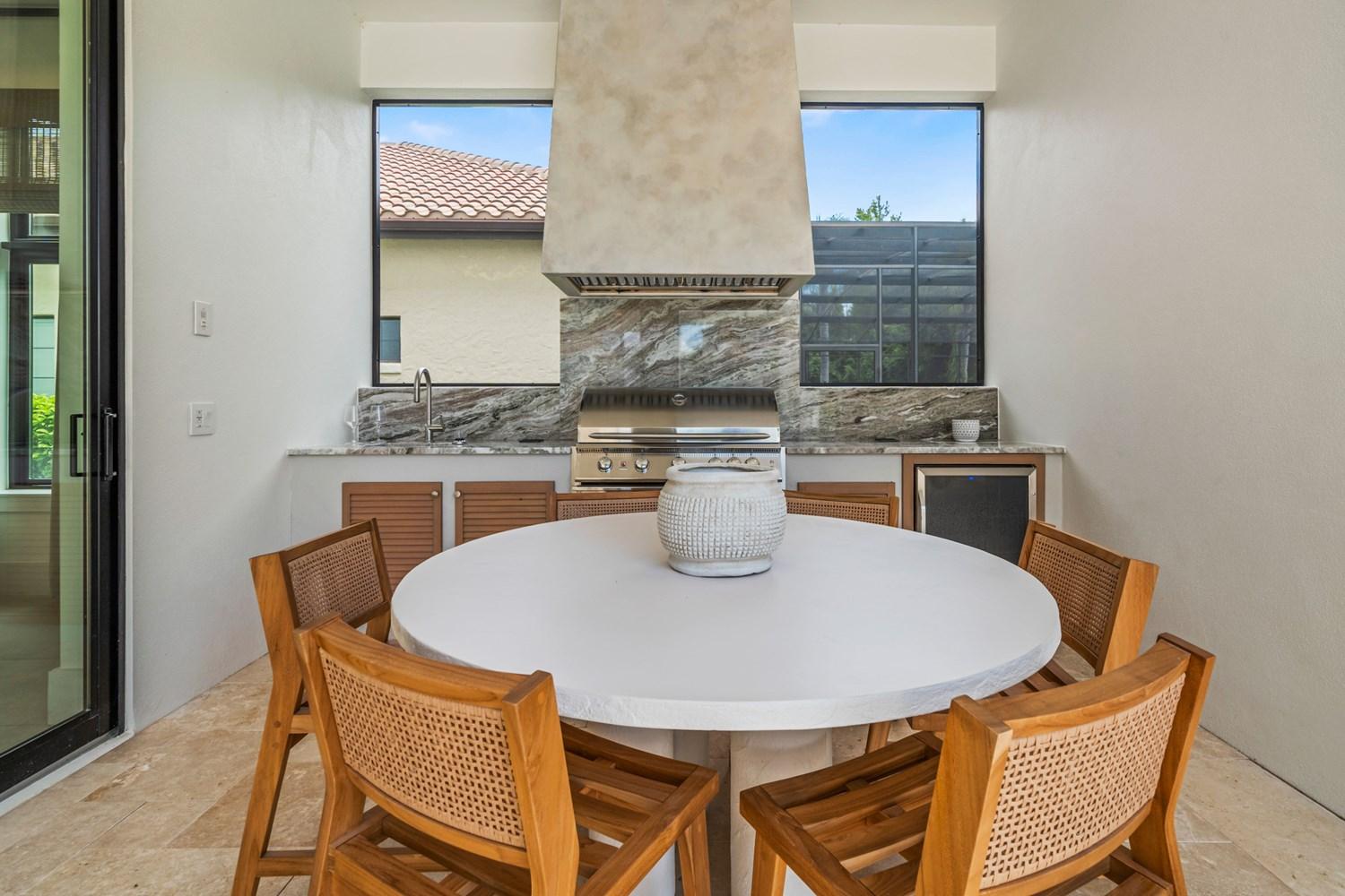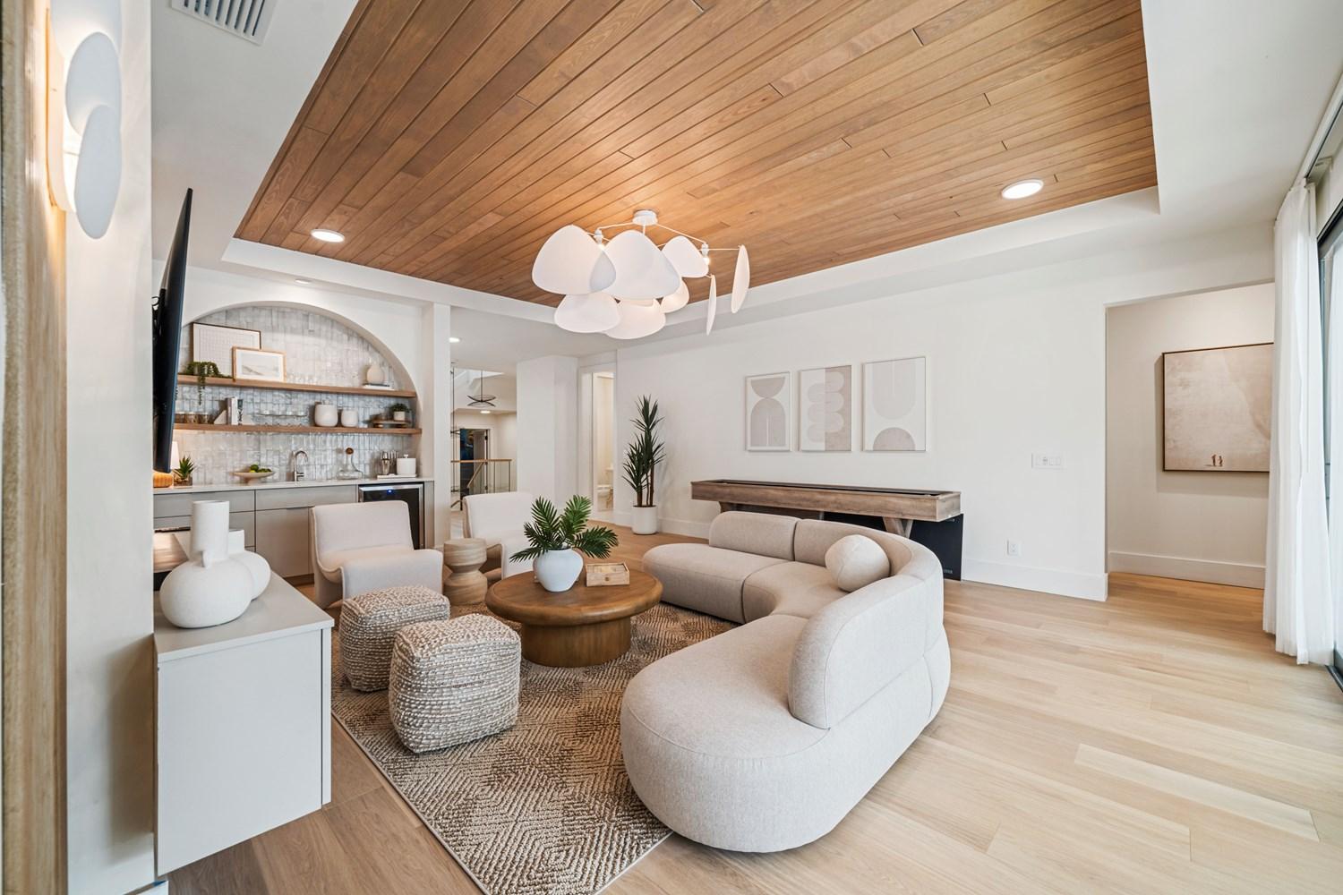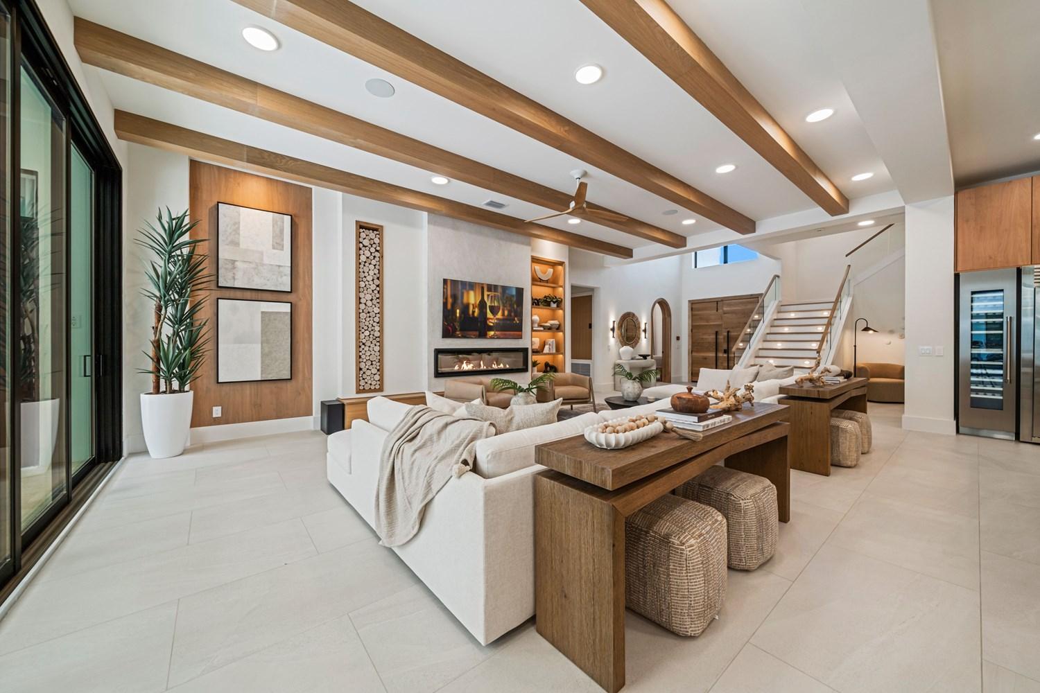 Younger guests willlove the “How to Train Your Dragon”themed bedroom, complete with a secret hideout and its own gaming nook, while the grown-ups can settle into the expansive movie theatre, spend evenings in the games room, or squeeze in a workout in the gym/yoga suite, which overlooks the private rear outdoor space framed by tropicalwoodland. Outside, the resort-style pool area includes a sparkling poolwith spa, sun-shelf, and a fully equipped swim-up bar, perfect for sun-soaked afternoons and end-ofday wind-downs.