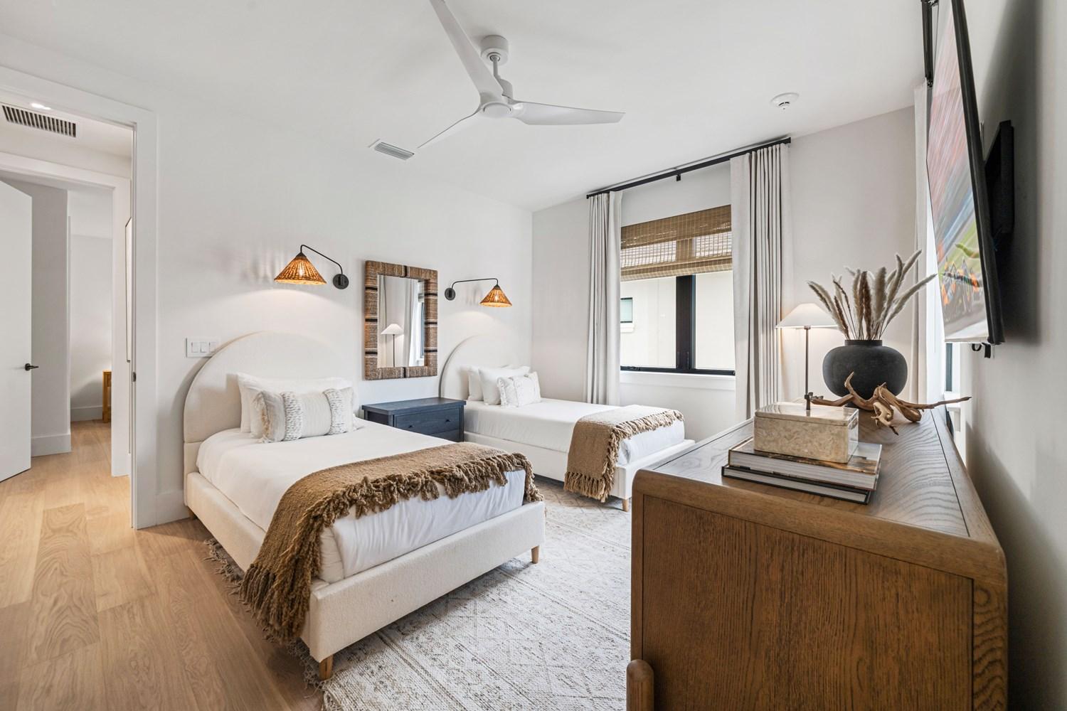 From the moment you arrive, this Reunion luxury villa feels like your own private boutique resort Interiors are grand yet inviting, with thoughtfultouches throughout from wet bars and table games on each levelto elegant entertaining spaces that make group holidays feelseamless The crown jewelis the opulent third-floor Penthouse Suite, offering over 1,250 sq ft ofpure indulgence Expect a private lounge, a flowing bedroom layout, a steam shower, walk-in wardrobe, and a balcony with breathtaking views, a true retreat for anyone who likes their holiday with a little extra wow