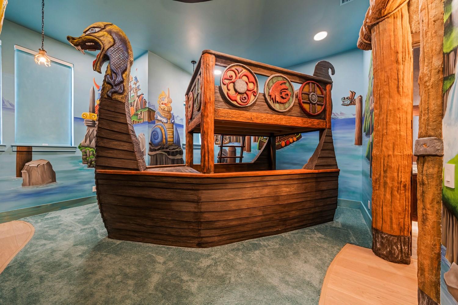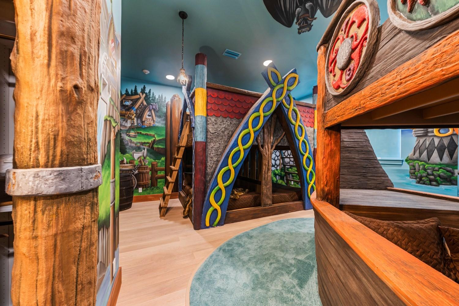 1 “How to Train Your Dragon”themed bedroom with 3 bunkbeds
