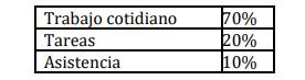 Componentes de la calificación: La nota en cada asignatura para cada período, se obtendrá sumando los porcentajes correspondientes a las calificaciones obtenidas por la persona estudiante en los siguientes componentes: a) Trabajo cotidiano, b) Tareas, c) Pruebas (según corresponda), d) Asistencia. Los componentes de la calificación establecidos en este artículo, en ningún caso, pueden modificarse ni sustituirse.