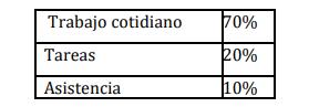 -Trabajo cotidiano. Consiste en las actividades educativas que realiza el estudiantado con la guía y orientación de la persona docente según el planeamiento didáctico y el programa de estudios. Para su calificación se deben utilizar instrumentos técnicamente elaborados, en los que se registre información