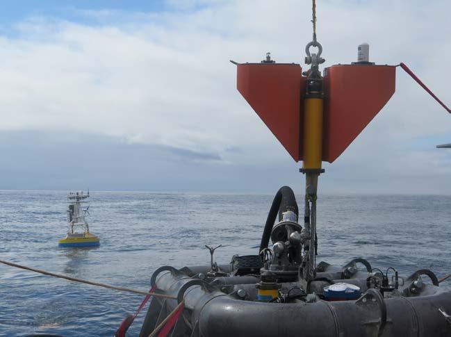 FIGURE A. A Regional Cabled Array instrumented Deep Profiler deployed off the fan tail of R/V Thomas G. Thompson during the 85-day 2014 installation cruise led by Chief Scientist John R. Delaney, University of Washington. Credit: M. Elend, University of Washington, V14.