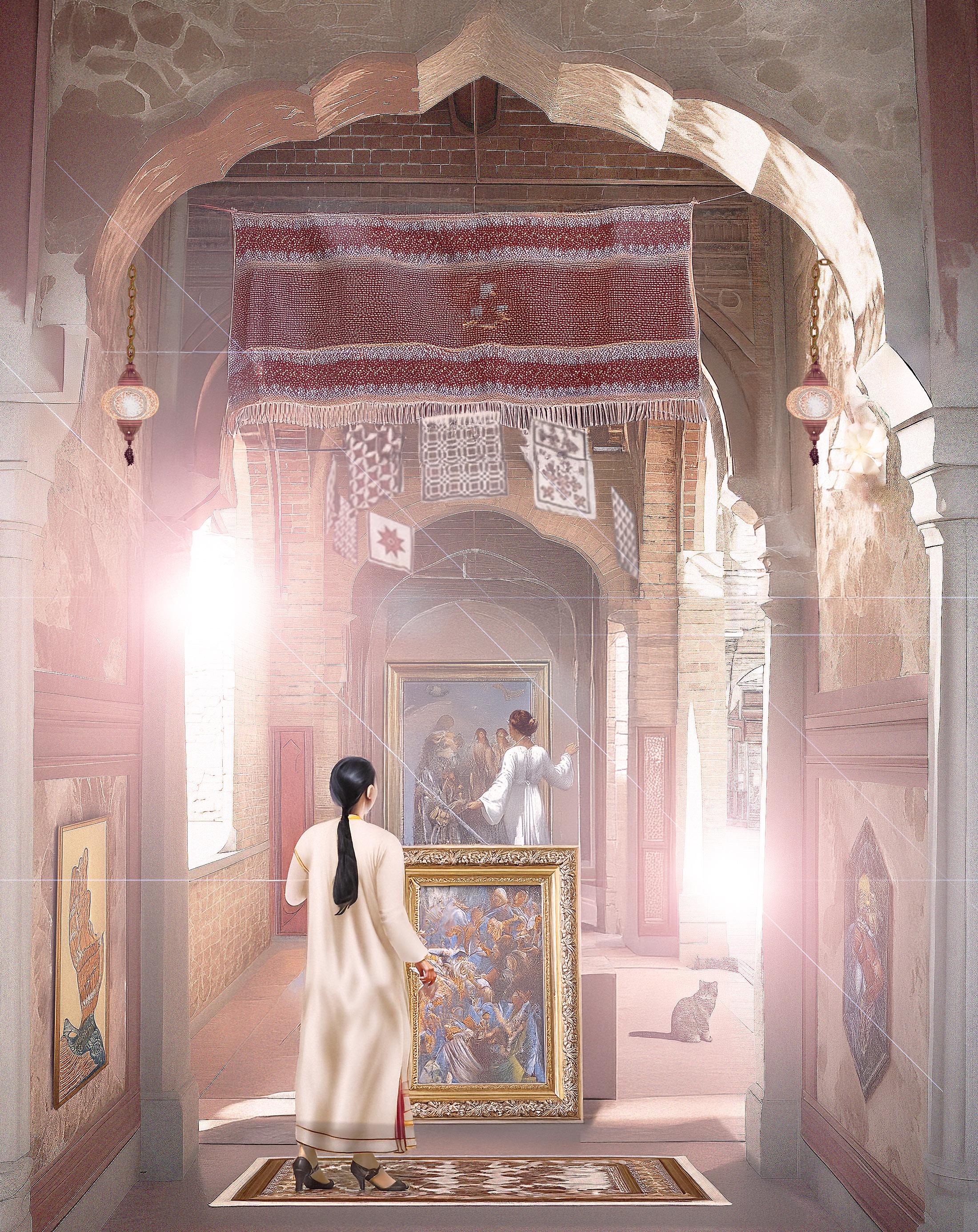MIXED MEDIA RENDERING, 2021: HERITAGE INDIA REFRAMED AS EXHIBITION SPACE.