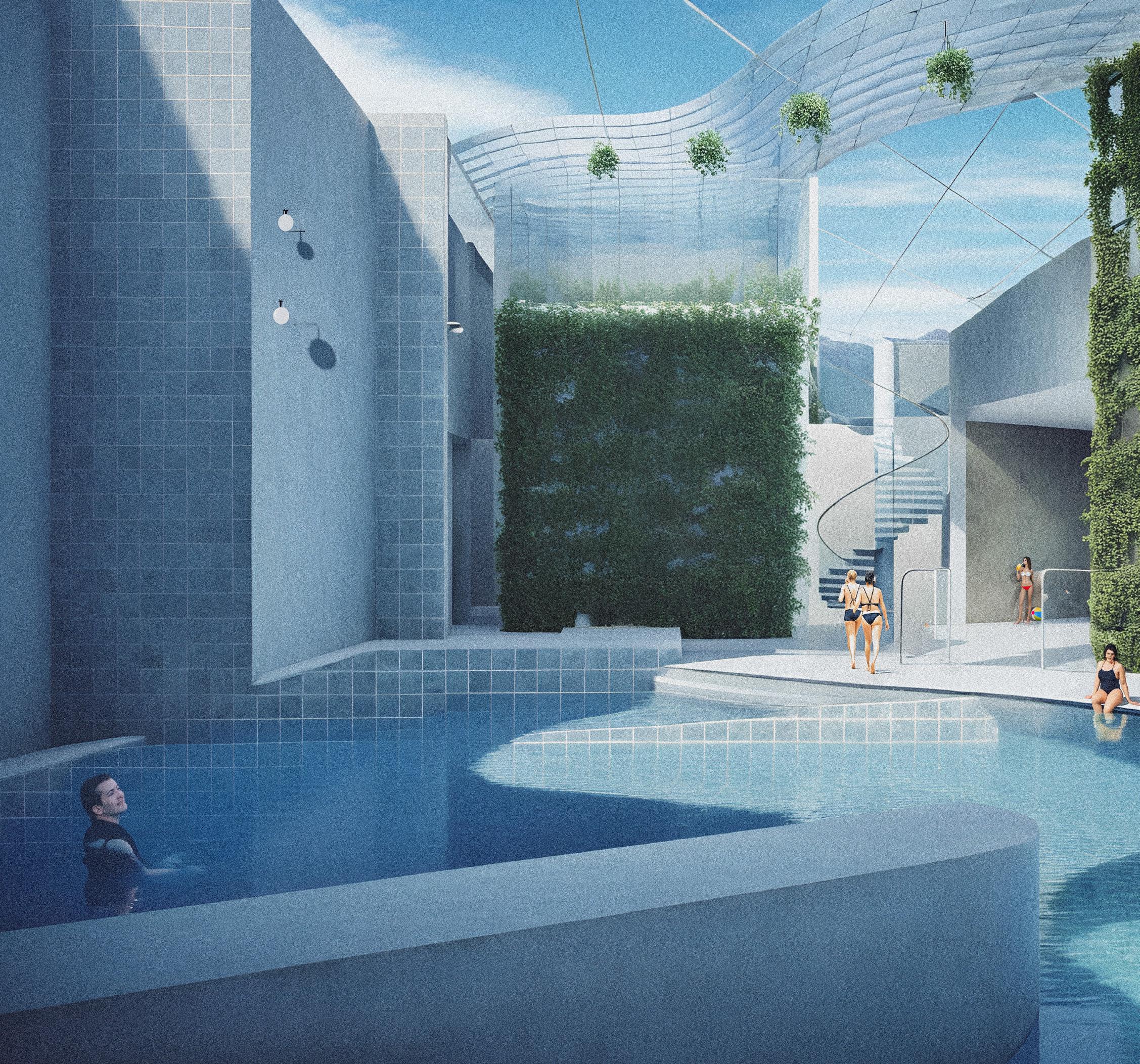 DIGITAL RENDER, 2024: POOL AREA ON FOURTH FLOOR OPENING UPTO 25 FEET CEILEING