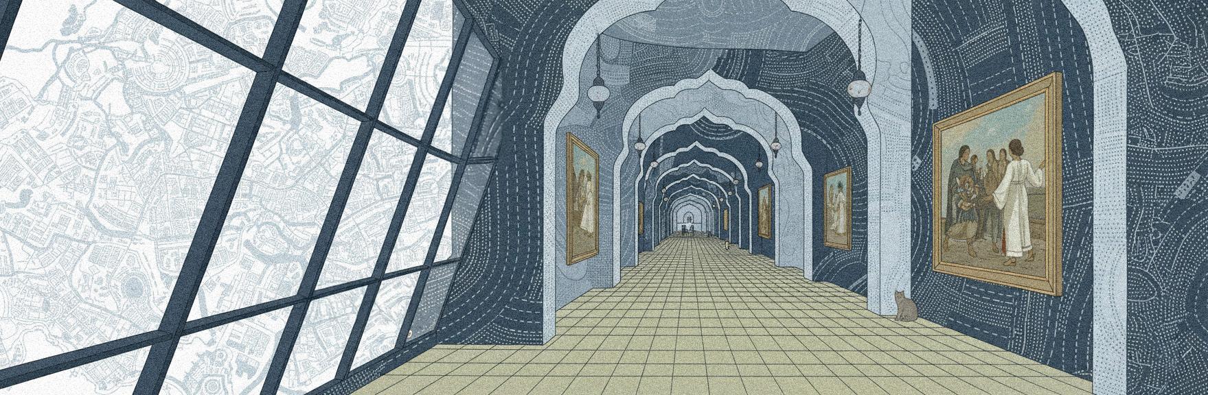 MIXED MEDIA RENDERING, 2021: HERITAGE INDIA RE FRAMED AS EXHIBITION SPACE.