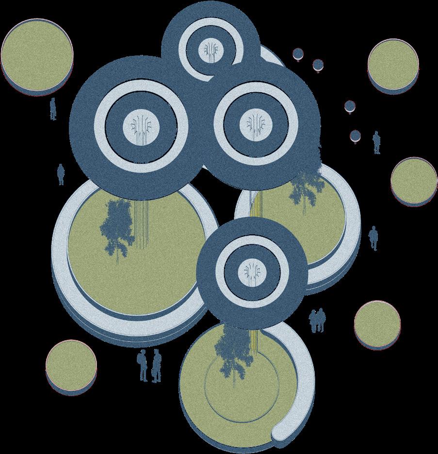 CIRCULATION AND ACCESSIBILITY : THE BRIDGE ESTABLISHES A LEGIBLE NETWORK CONNECTING ALL SIX APPROACHES. EACH RAMP FOLLOWS ADA STANDARDS FOR UNIVERSAL ACCESSIBILITY. THE CENTRAL ELEVATED PLAZA SERVES AS A NODAL POINT FOR GATHERING AND ORIENTATION.