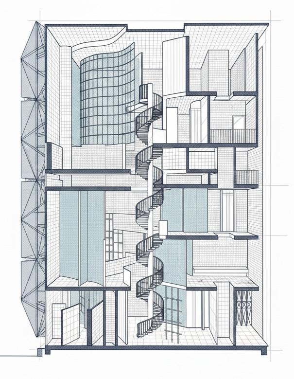 THIS PROJECT EMBODIES A BIO-MIMETIC AND OFF-GRID ARCHITECTURAL PHILOSOPHY INSPIRED BY THE MATHEMATICS OF NATURE, WHERE FORM, STRUCTURE, AND ENVIRONMENT MERGE INTO A SELFSUSTAINING HABITAT. USING GRASSHOPPER AS A GENERATIVE DESIGN TOOL, THE BUILDING EMPLOYS VORONOI GEOMETRY TO SIMULATE THE EFFICIENCY, ADAPTABILITY, AND SPATIAL FLUIDITY FOUND IN NATURAL ORGANISMS SUCH AS CORAL STRUCTURES, LEAF VENATION, AND CELLULAR SYSTEMS.