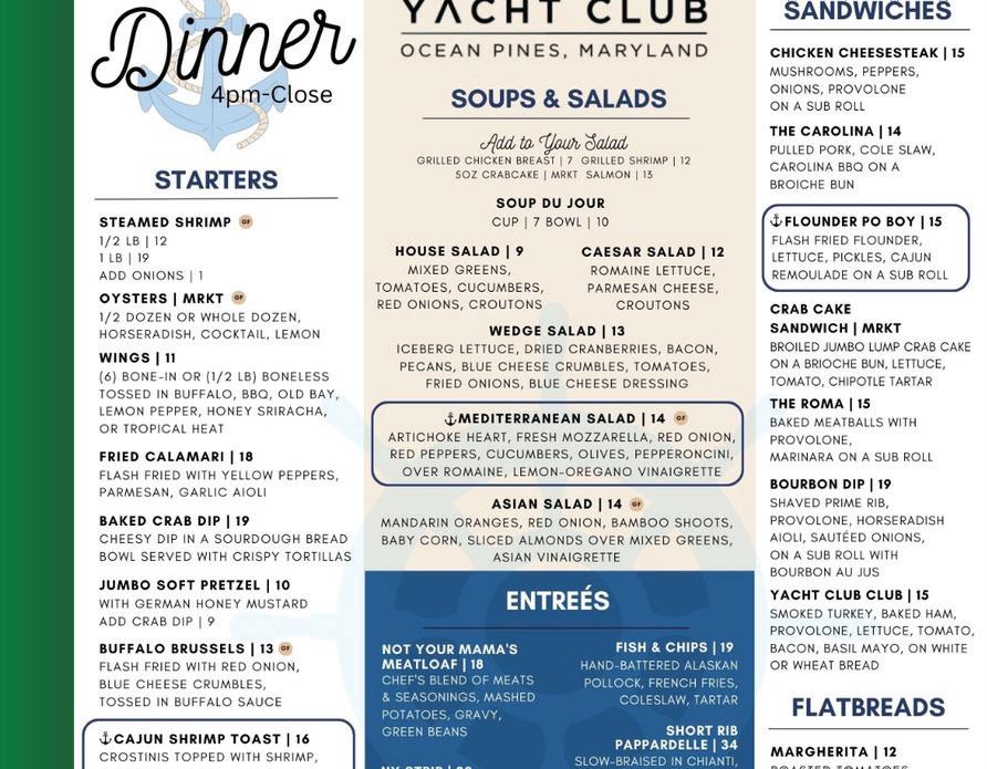 Kickoff ickoff SP L MENU ALL DAY LONG FOOD & DRIN SPECIALS O E , & ! PECIAL DRINK C K R plus Co Coun untr try Su Summ mmer e ountry Summer 1 MUMFORD'S LANDING RD, OCEAN PINES, MD | OPYACHTCLUB.COM | 410.641.7501 st served!