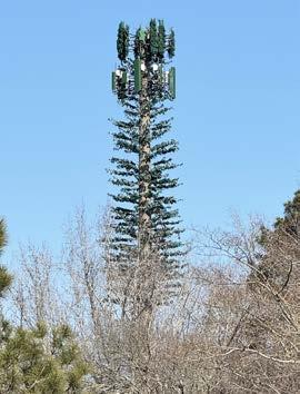 The structure is proposed as a camouflaged “monopine,” designed to resemble a tree and would be located within an unmanned, fenced, locked and secured ground compound measuring approximately 70 feet by 30 feet. Fencing and a landscaped buffer are proposed around the base. No lighting is required on the tower under Federal Aviation Administration guidelines.