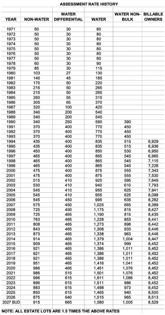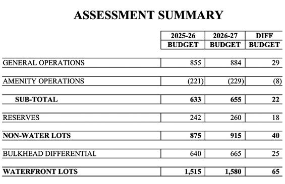 Viola acknowledged her point but noted that a general bulkhead assessment already exists for all homeowners in addition to the waterfront differential. He said the issue ultimately represents a policy decision for the board of directors.